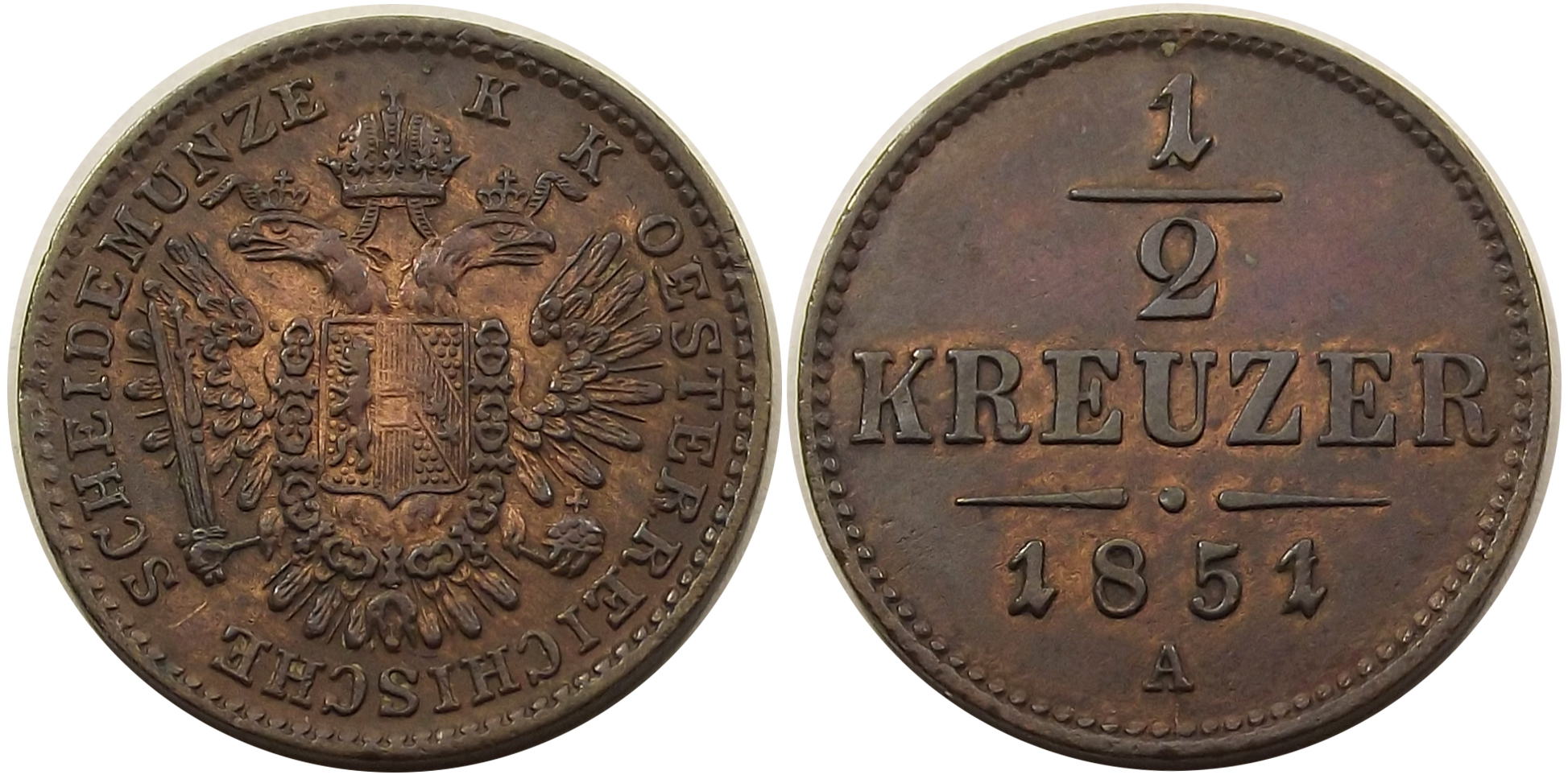 1/2 krajcár 1851 A Ferenc József kiváló állapotban (fb