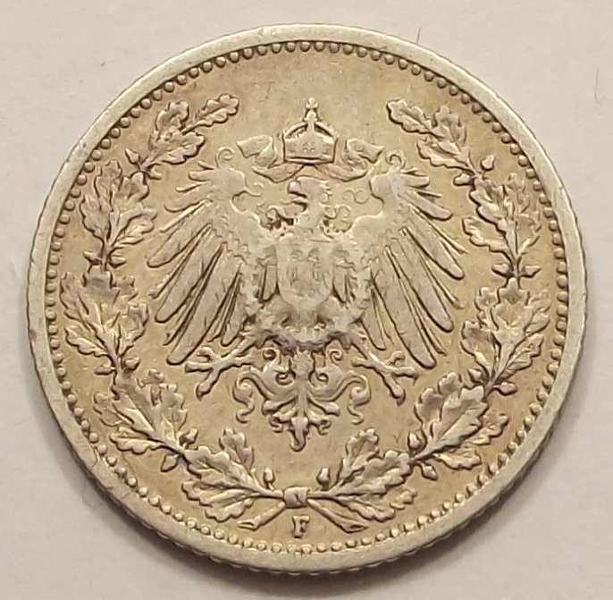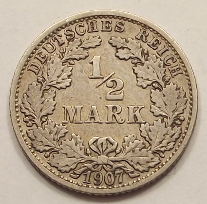 1/2 márka 1907 F Német Birodalom , nagyon szép állapotban.