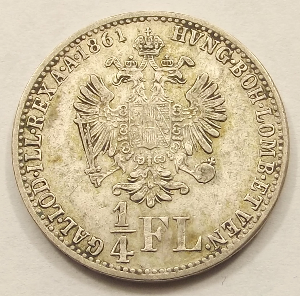 1/4 florin 1861 A Ferenc József szép állapotban (baj.