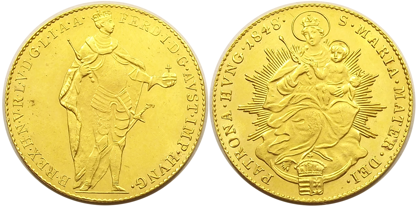 1 dukát 1848 V. Ferdinánd extra állapotban, kiváló verdefénnyel. (s-gy