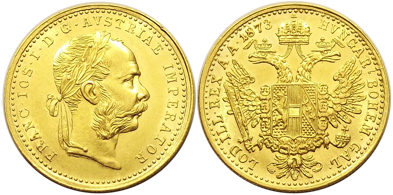 1 dukát 1873 Ferenc József, kiváló állapotban, szépen kivehető verdefénnyel (sgy