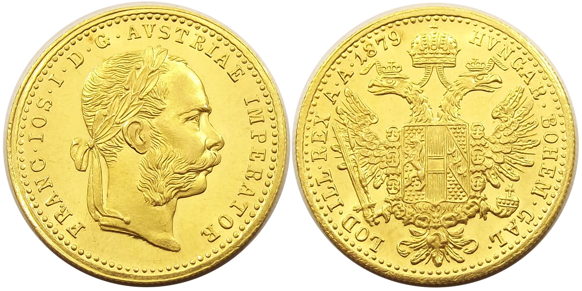 1 dukát 1879 Ferenc József, kiváló állapotban, szépen kivehető verdefénnyel (sgy