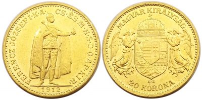 1 dukát 1912 Ferenc József, kiváló állapotban, szépen kivehető verdefénnyel. Apró peremhiba (sgy