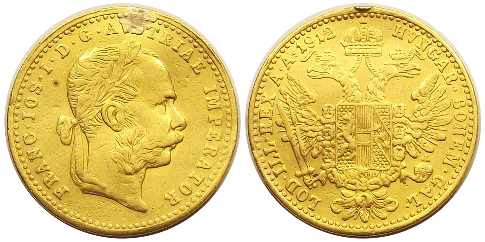 Arany 1 dukát 1912 Ferenc József, eredeti évjárat, fülnyommal.