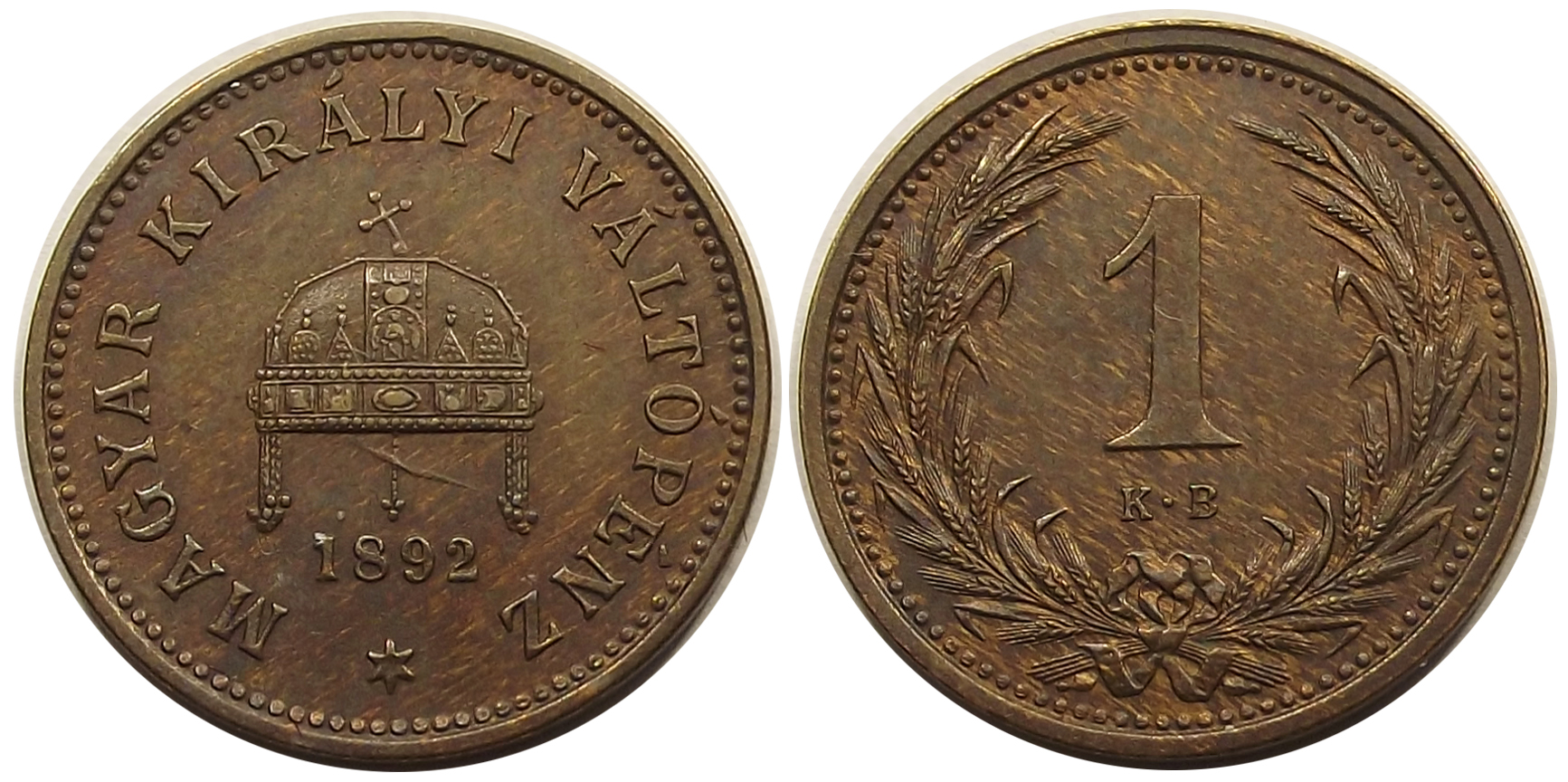 1 fillér 1892 Ferenc József kiváló állapotban, éles címerrel, nagyon szép eredeti színnel. Ebben a tartásban ritkább. (m