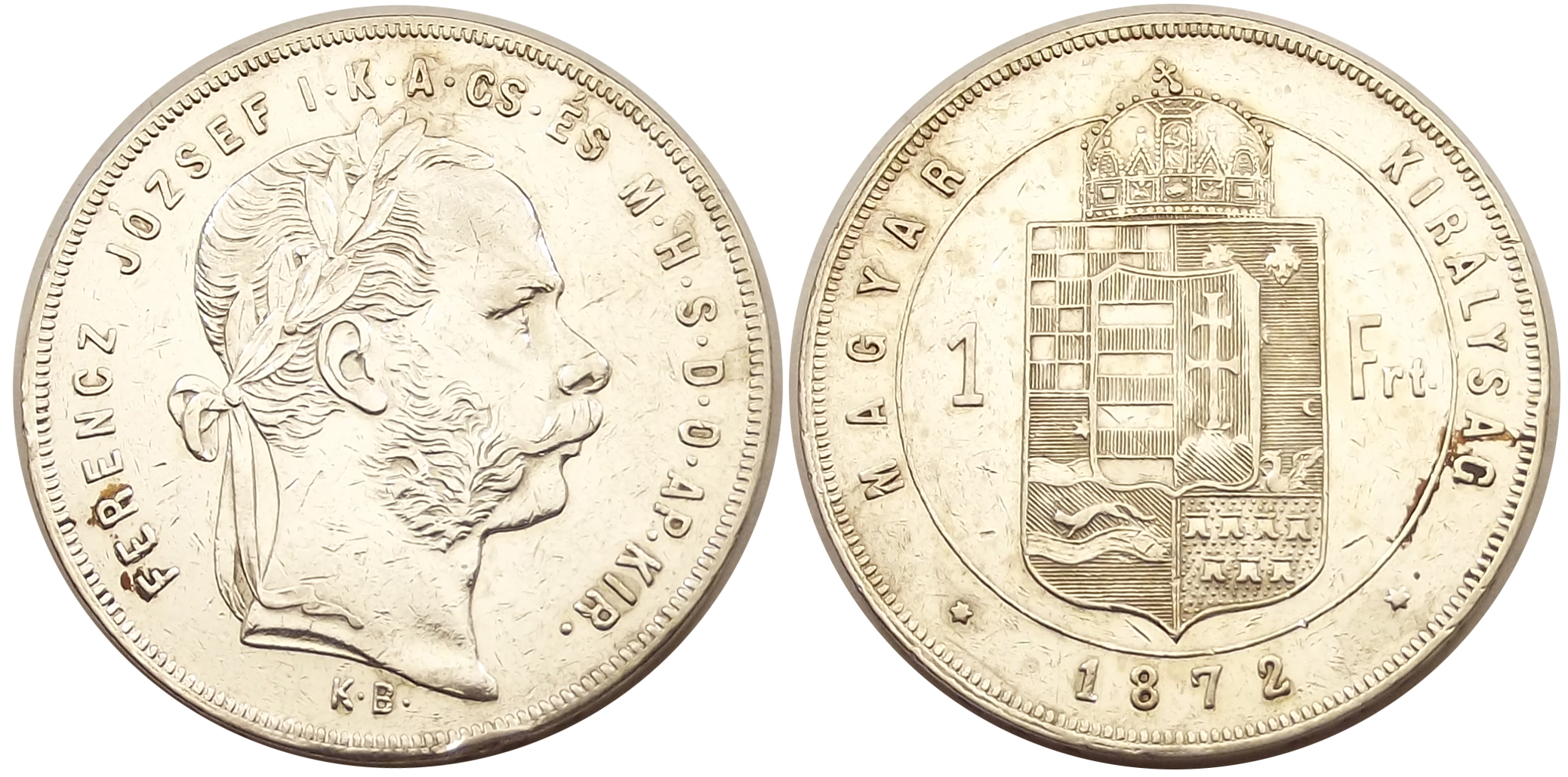 1 forint 1872 KB Ferenc József nagyon szép állapotban, tisztítás az érmén, peremhiba (vg