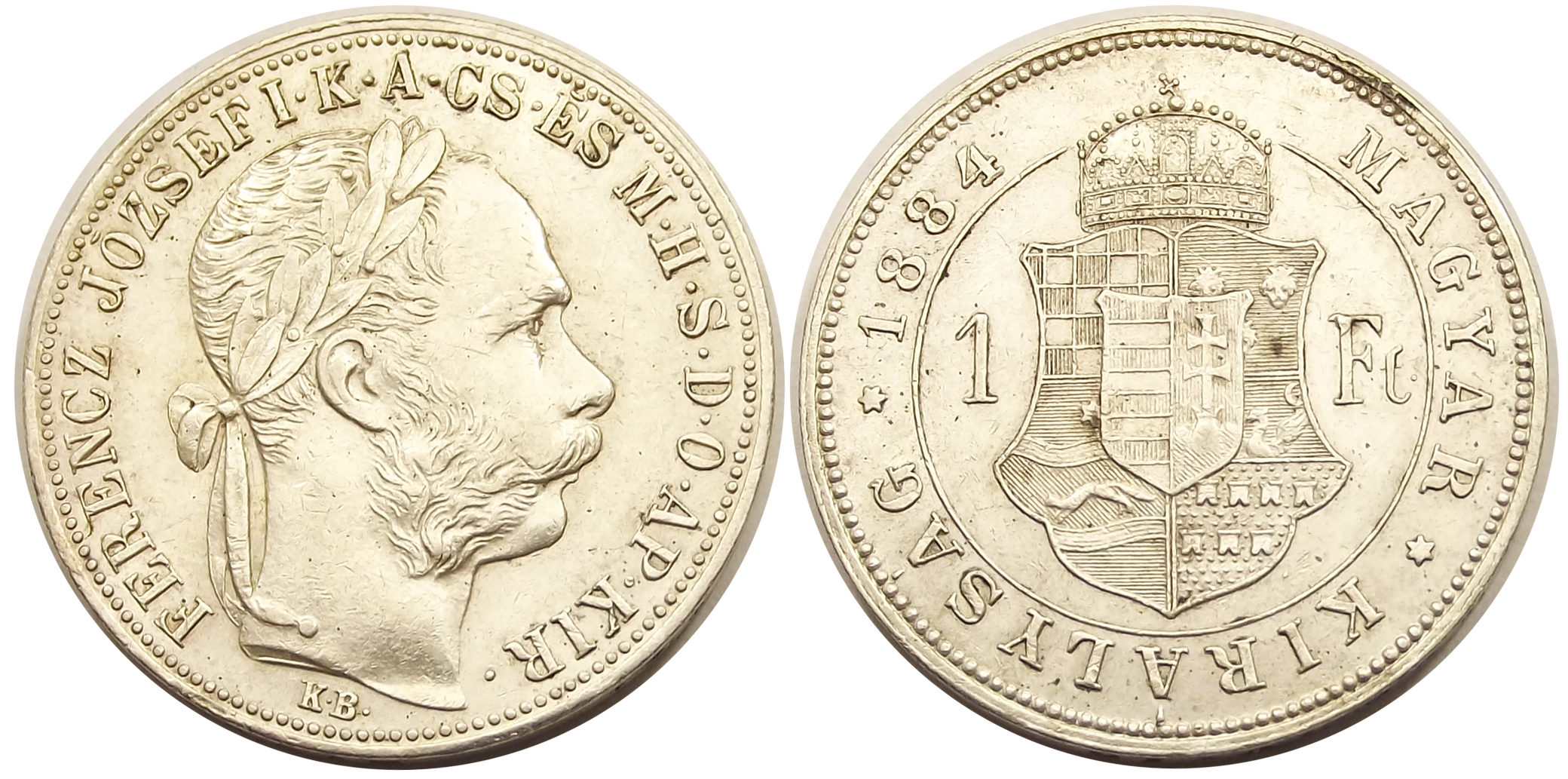 1 forint 1884 Ferenc József, nagyon szép állapotban, enyhe tisztítás. (baj
