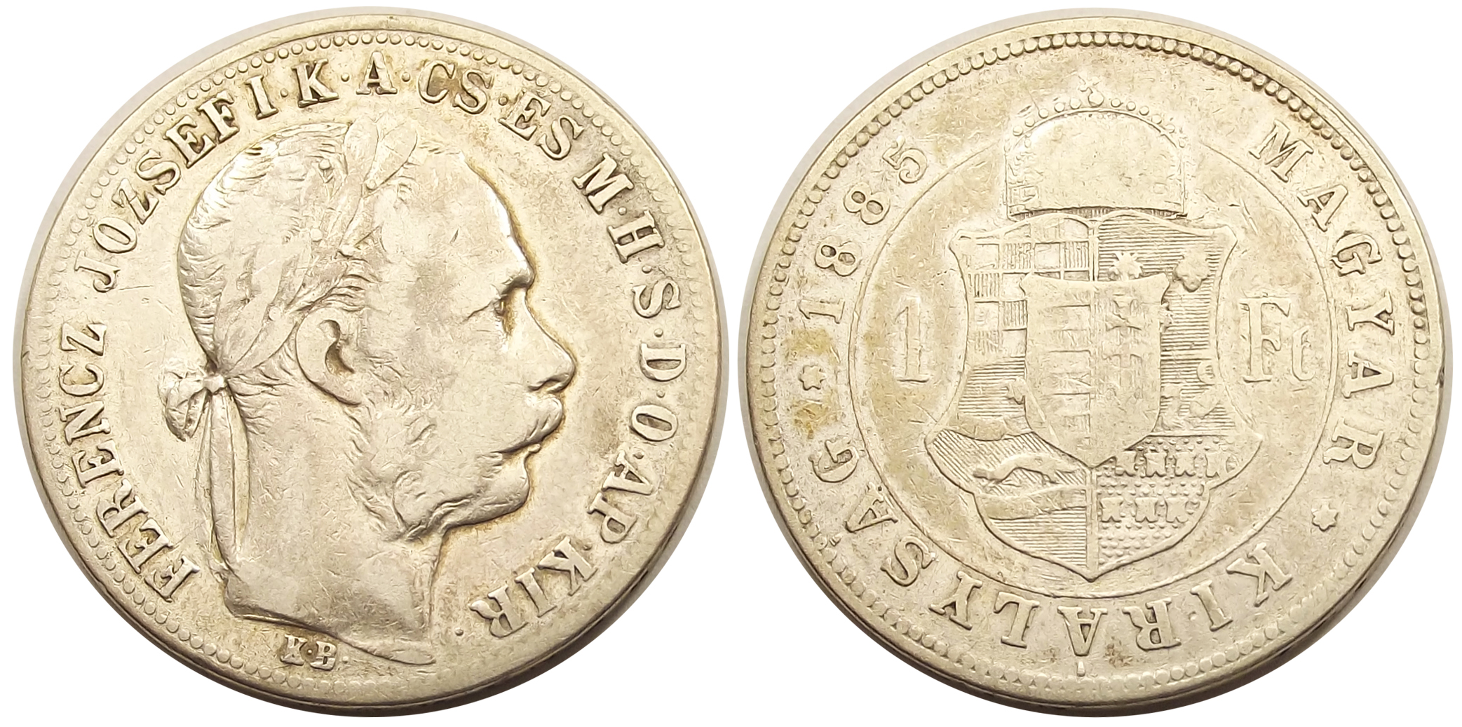 1 forint 1885 Ferenc József, használt állapotban. (baj