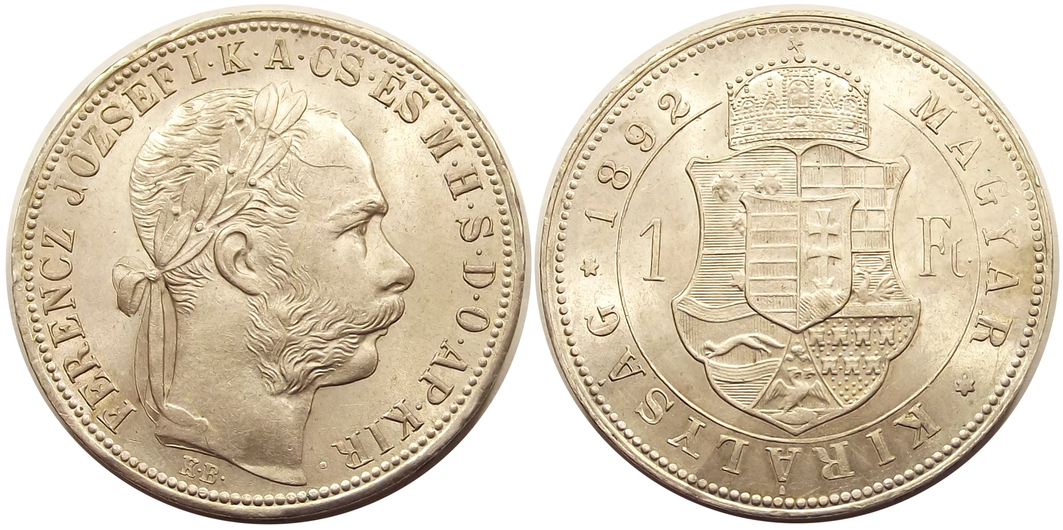 1 forint 1892 Fiume Ferenc József, kiváló állapotban, éles portréval, verdefénnyel (b