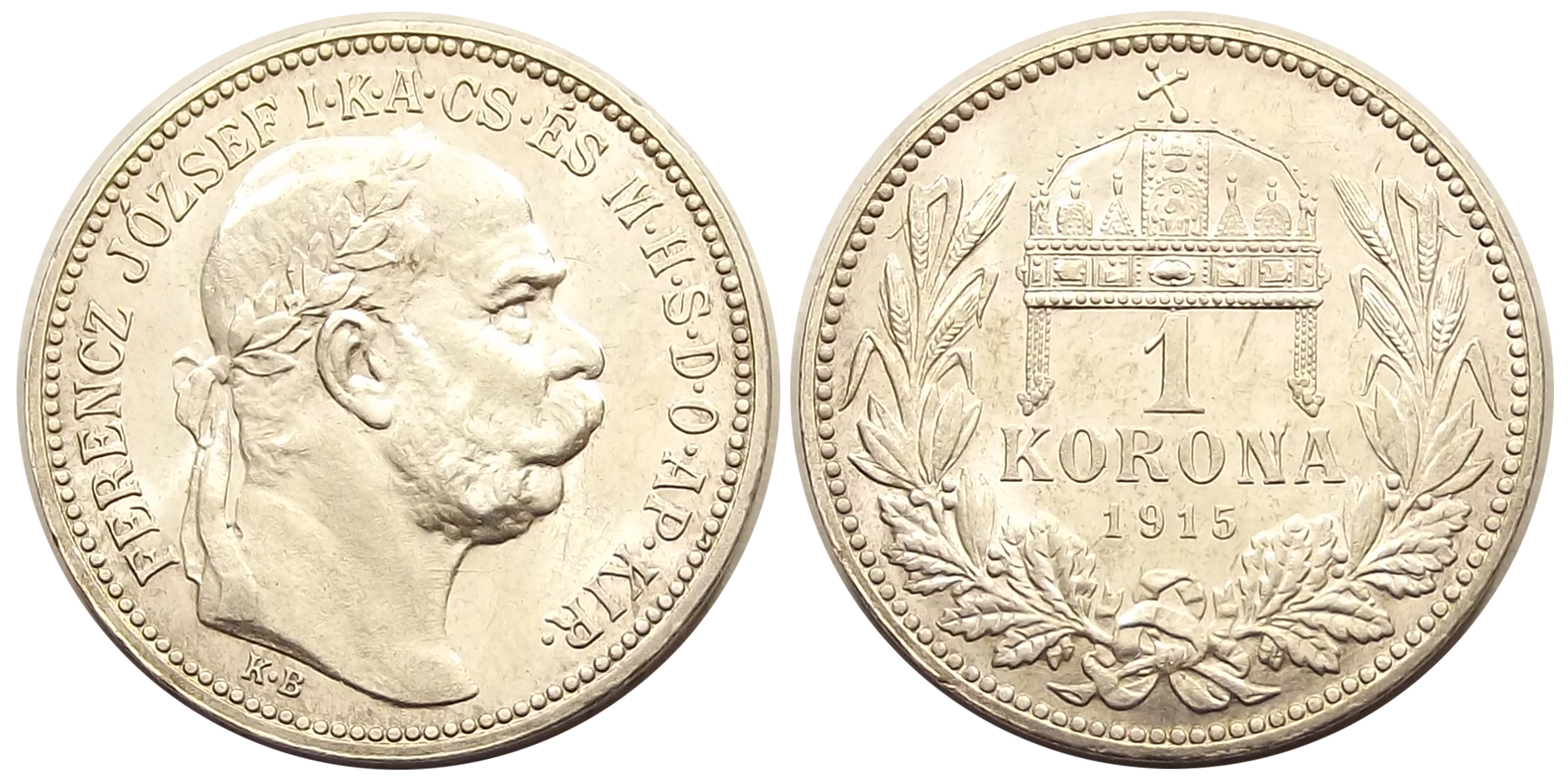 Ezüst 1 korona 1915 Ferenc József, kiváló állapotban, verdefénnyel (dcs