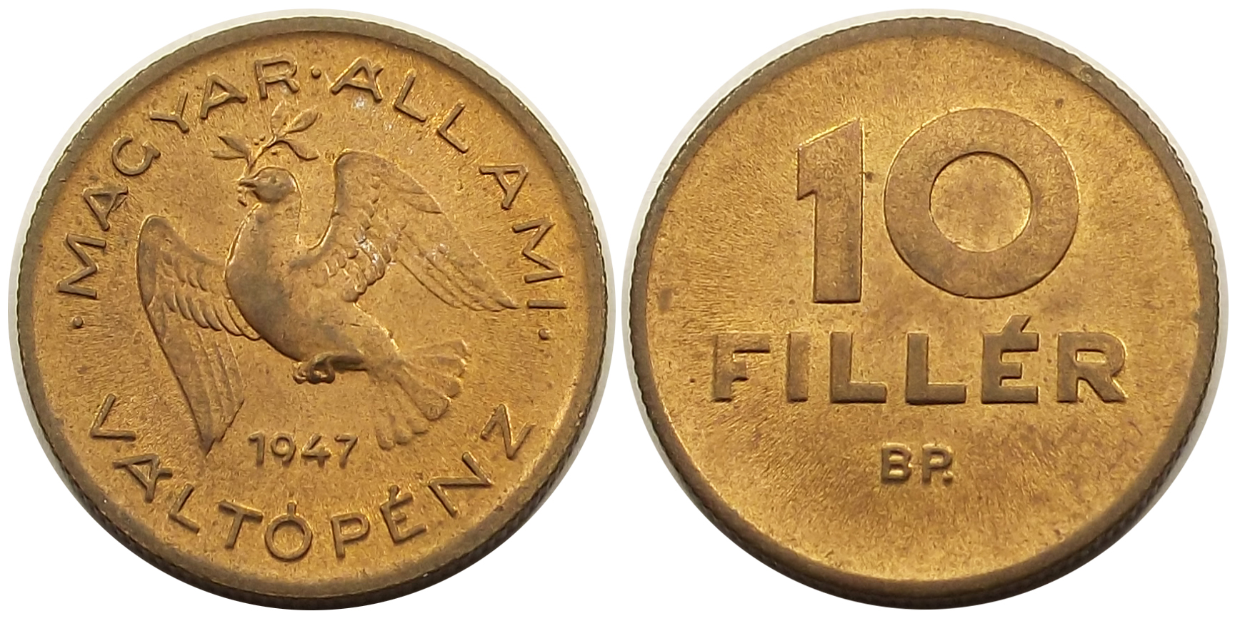 10 fillér 1947 Magyar Állami Váltópénz kiváló állapotban (NEM a citrom sorból!) (gyr