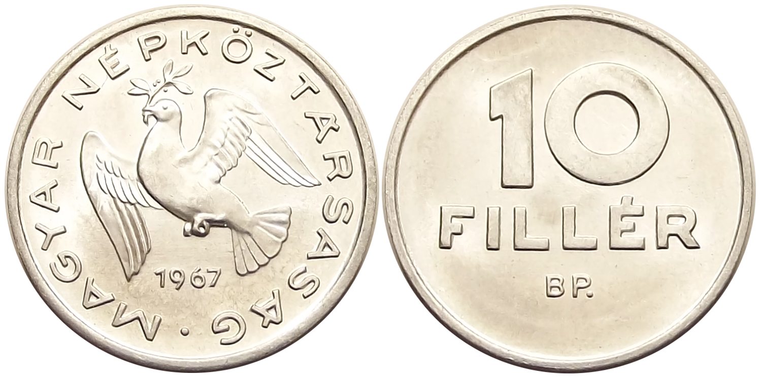 10 fillér 1967 kiváló állapotban. Ritka, mindössze 5000 darab készült. (b