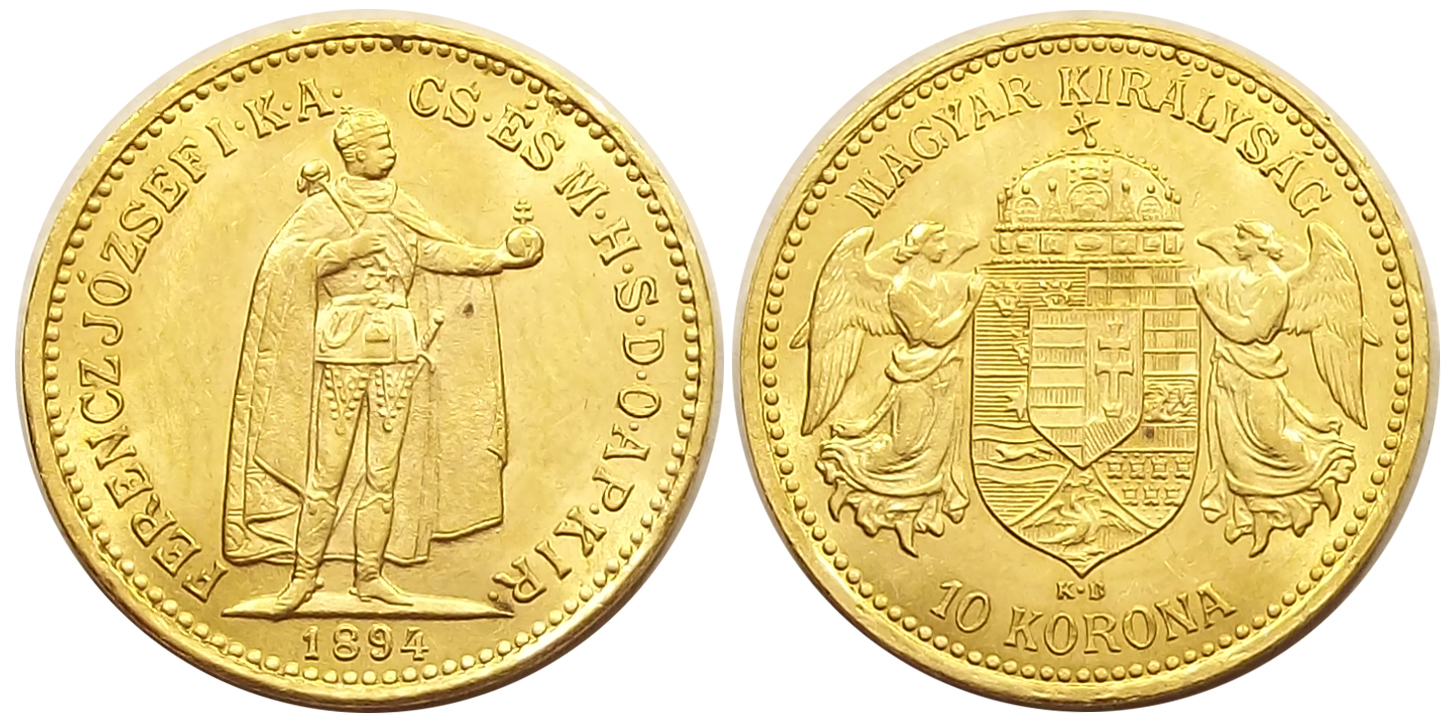 10 korona 1894 Ferenc József kiváló állapotban, éles portréval, címerrel, szépen kivehető verdefénnyel. Ez az évjárat ebben a tartásban igen ritkán fordul elő! (s gy