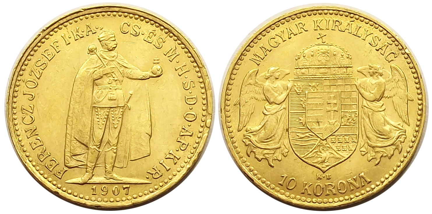 10 korona 1907 Ferenc József nagyon szép állapotban, nyitott “A” betűs változat (l