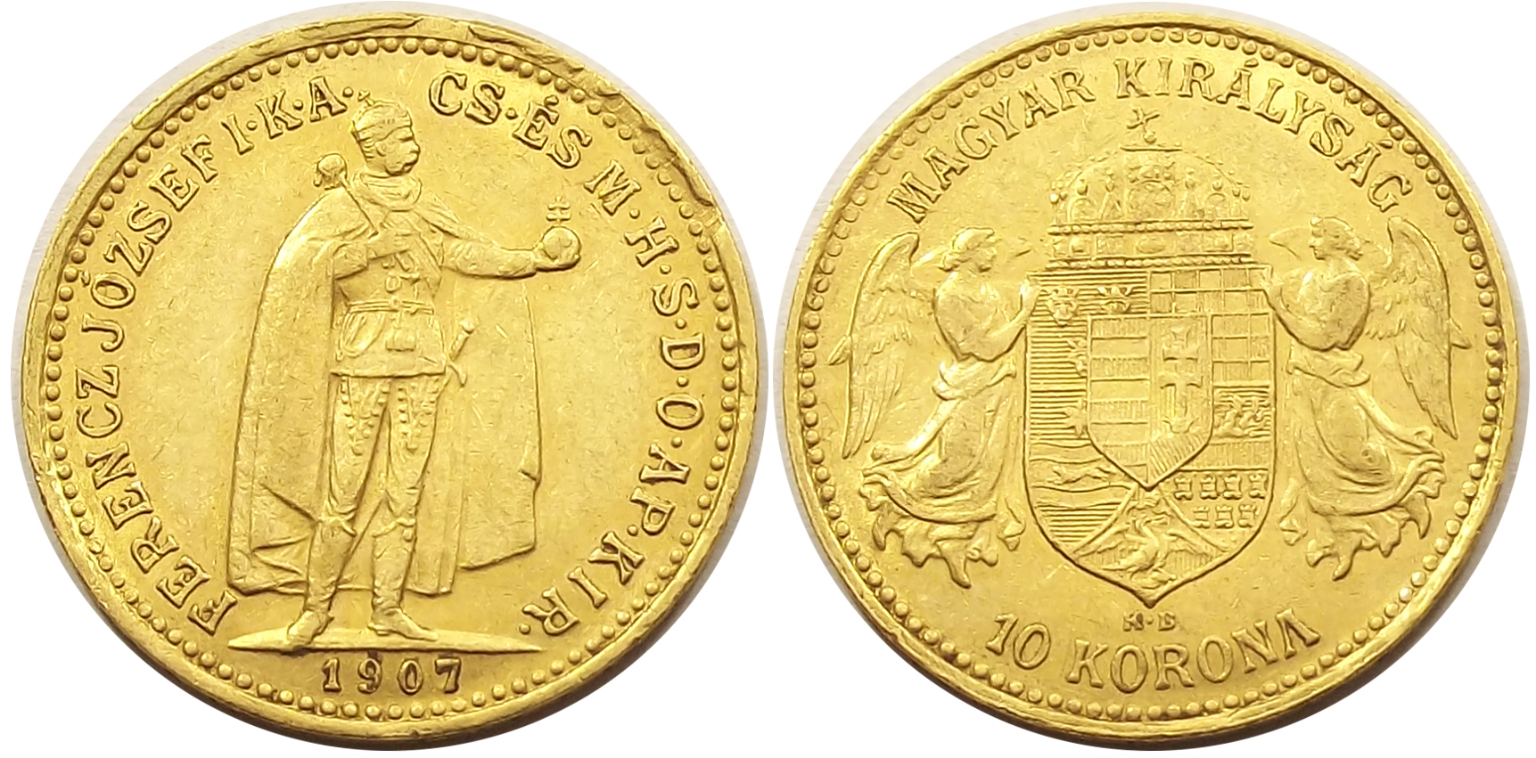 10 korona 1907 Ferenc József nagyon szép állapotban, nyitott “A” betűs változat (l