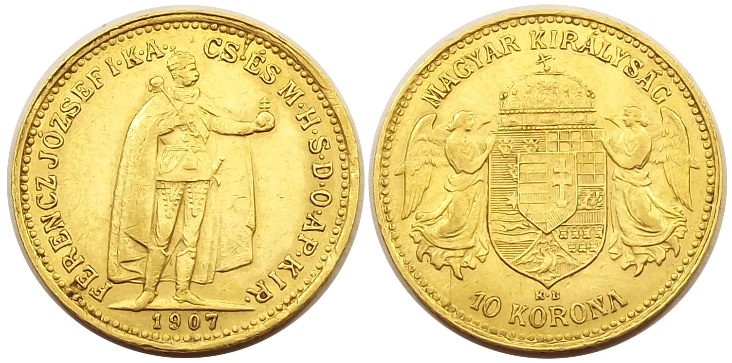 10 korona 1907 nyitott “A” Ferenc József, nagyon szép állapotban (l