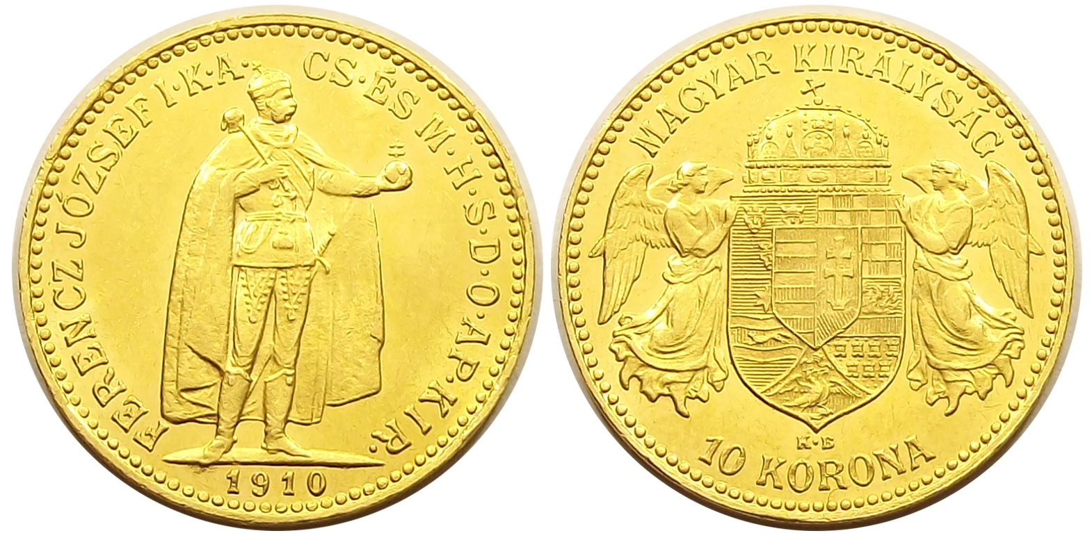 10 korona 1910 Ferenc József, kiváló állapotban. Apró horpadás a mezőben portré oldalon a király palástjától jobbra (l