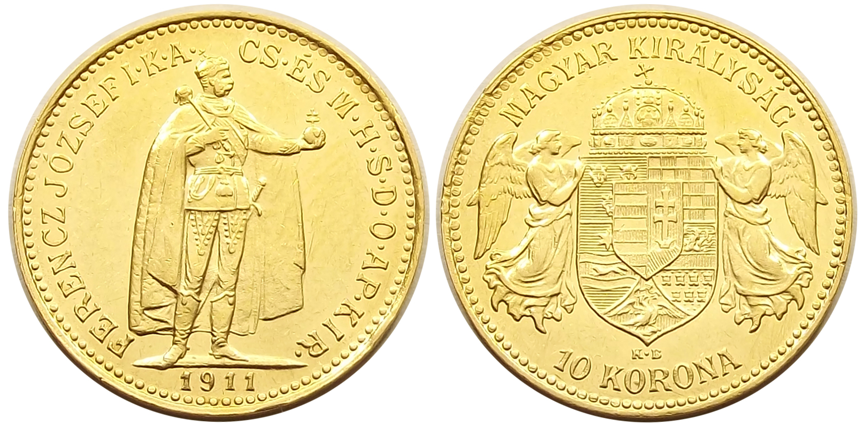 10 korona 1911 Ferenc József, kiváló állapotban. Minimális tisztítás az érmén (kr