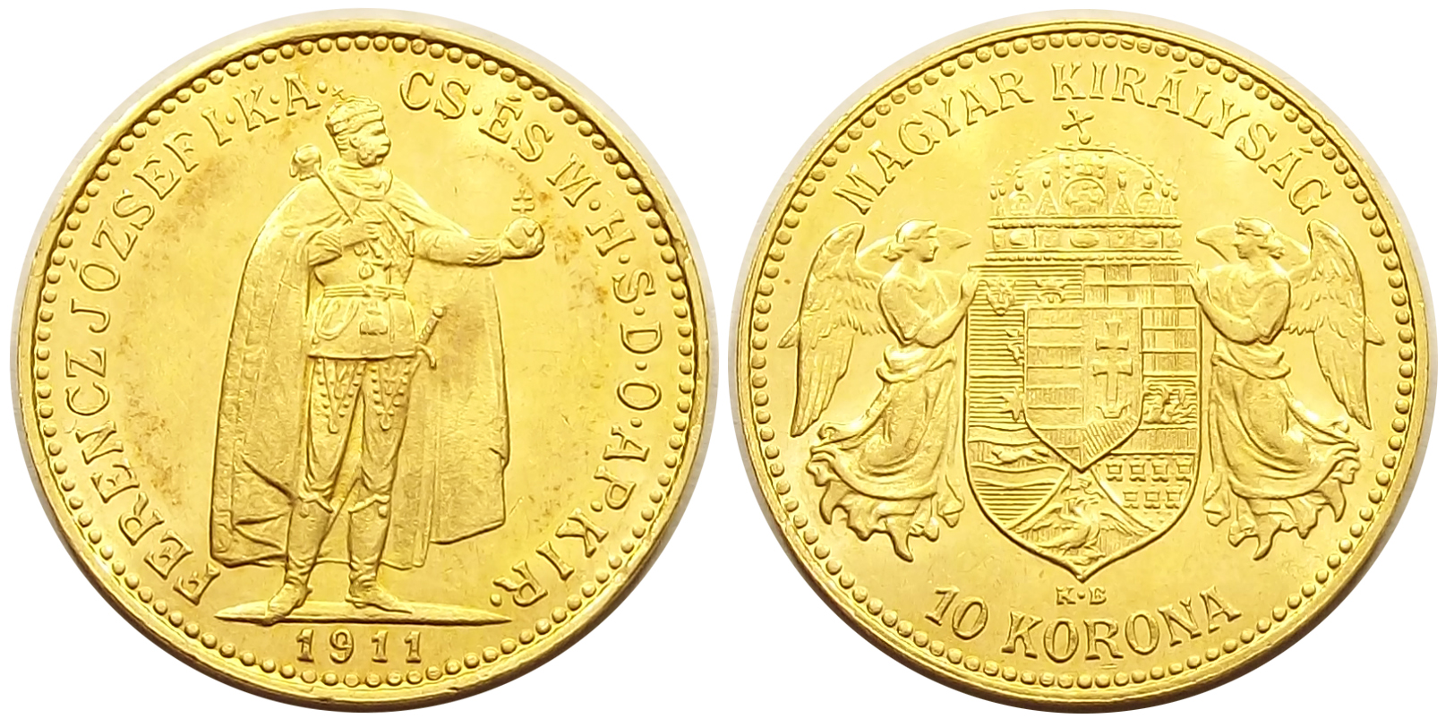 10 korona 1911 Ferenc József, kiváló állapotban, enyhe aranypatina. (l