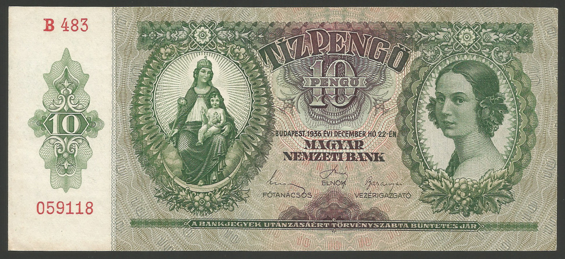 Főoldal Papírpénzek Magyar papírpénzek Pengő rendszer 1926-1946 10 pengő 1936