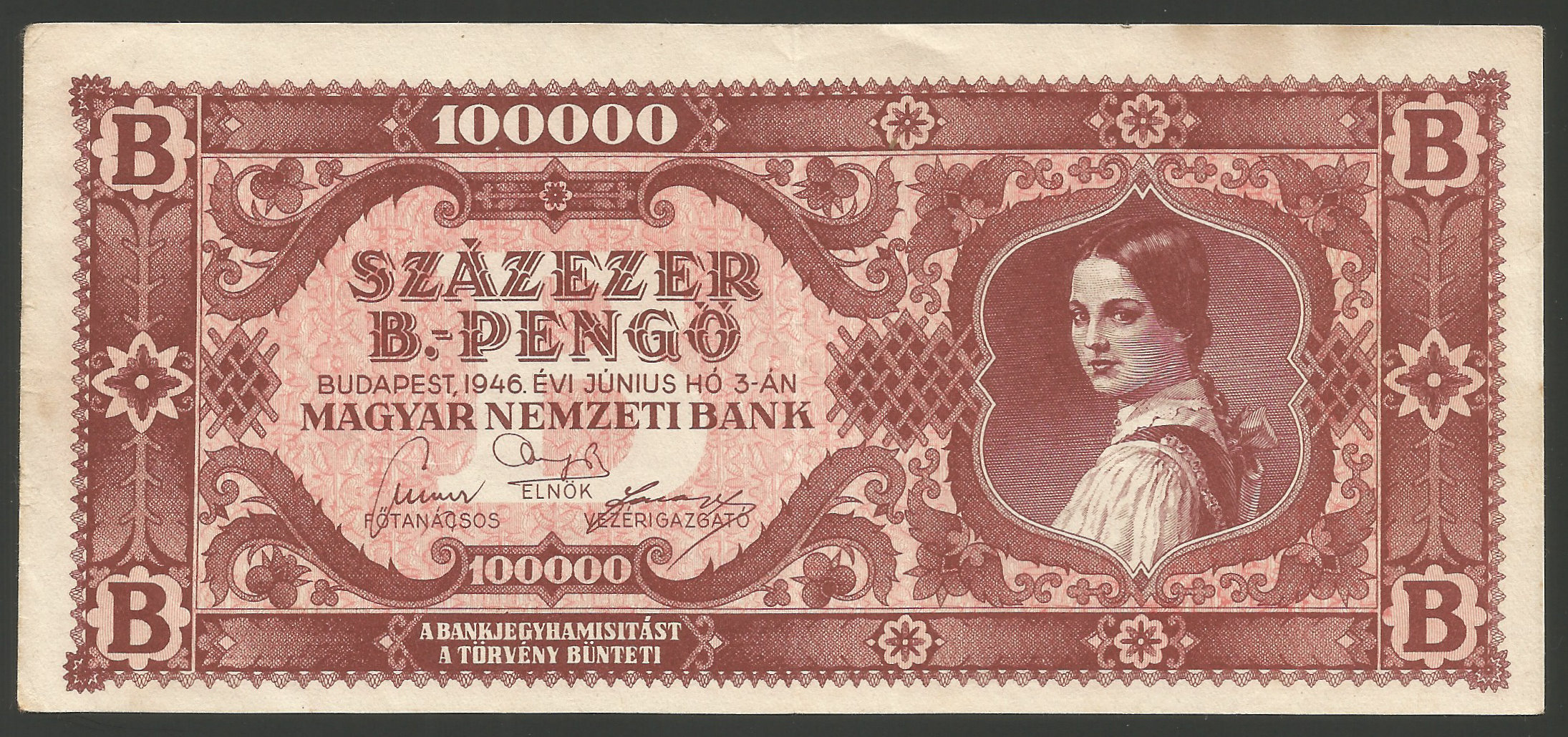 Főoldal Papírpénzek Magyar papírpénzek Pengő rendszer 1926-1946 100.000 bpengő 1946