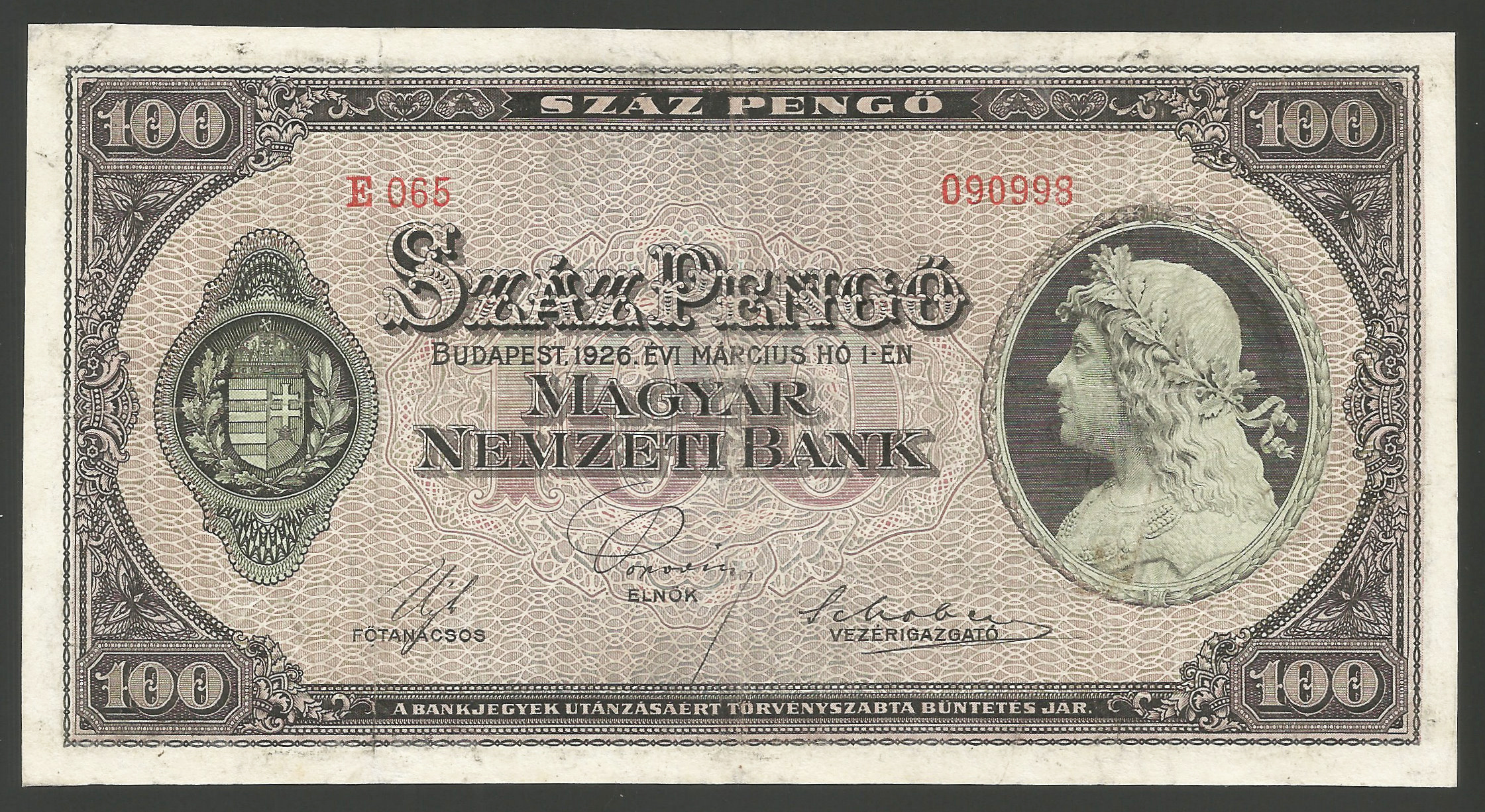 Főoldal Papírpénzek Magyar papírpénzek Pengő rendszer 1926-1946 100 pengő 1926