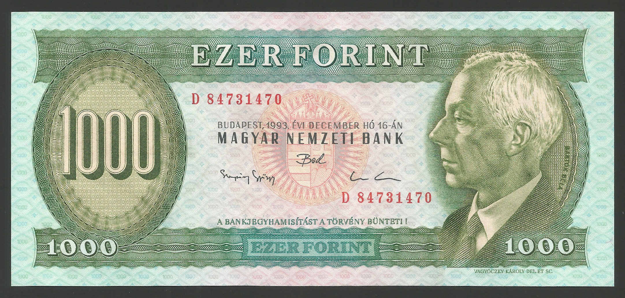 1000 forint 1993 D kiváló hajtatlan állapotban. (ós