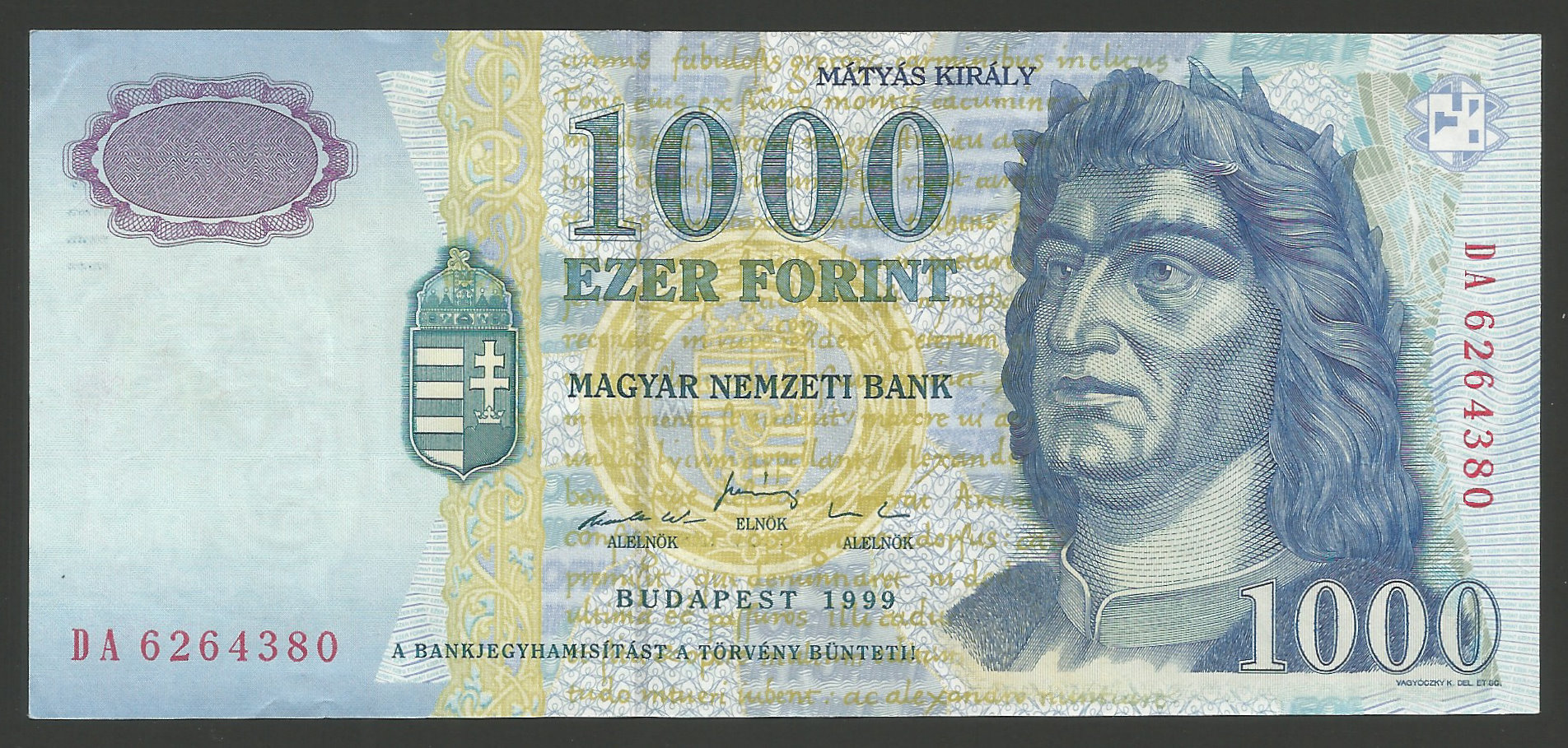 1000 forint 1999 DA nagyon szép állapotban, 1 hajtás, gyűrődések (sf