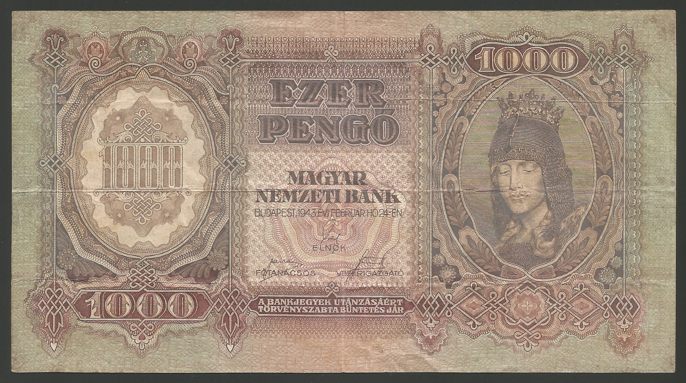 Főoldal Papírpénzek Magyar papírpénzek Pengő rendszer 1926-1946 1000 pengő 1943