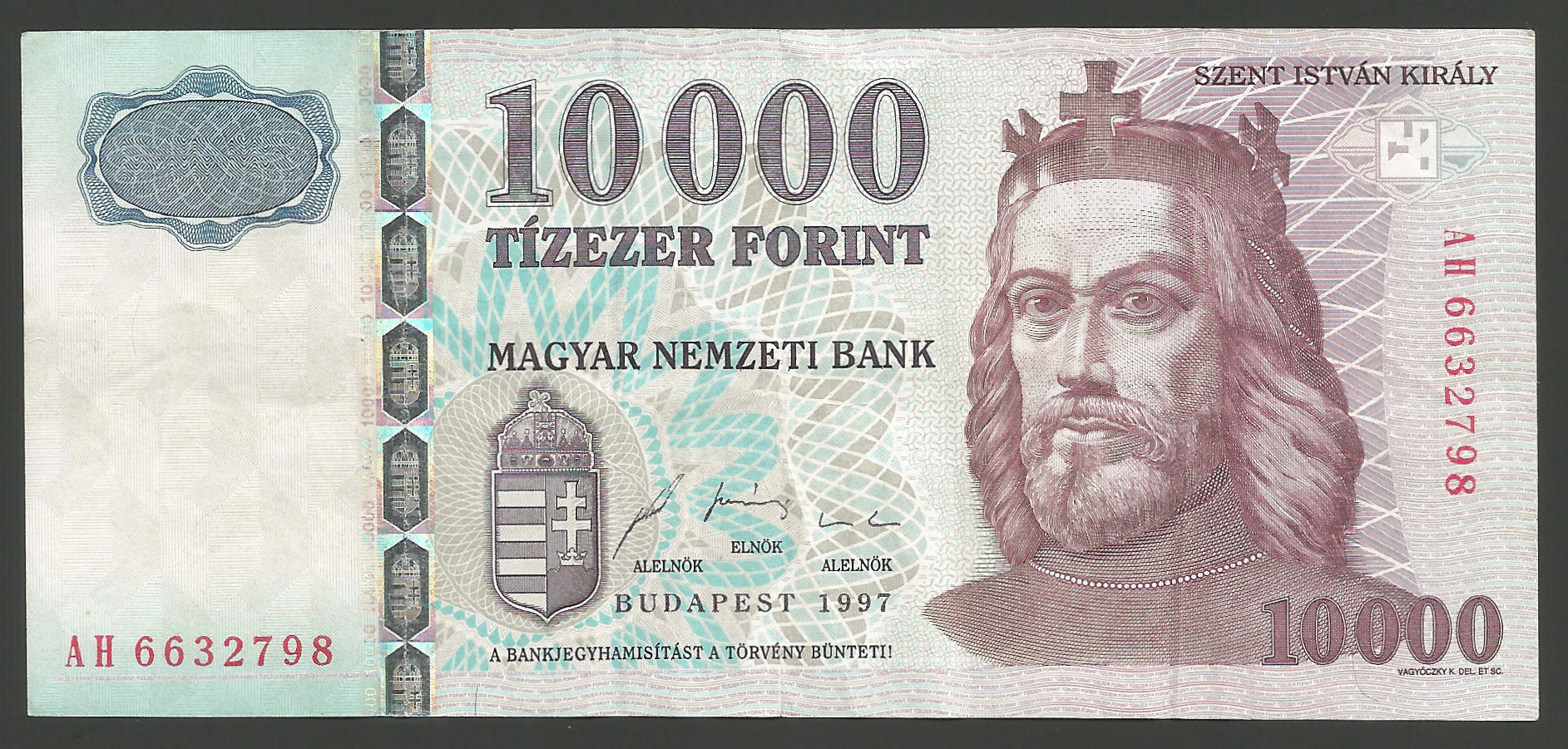 10000 forint 1997 AH – hibás nyomat, értékjelzés nélkül!