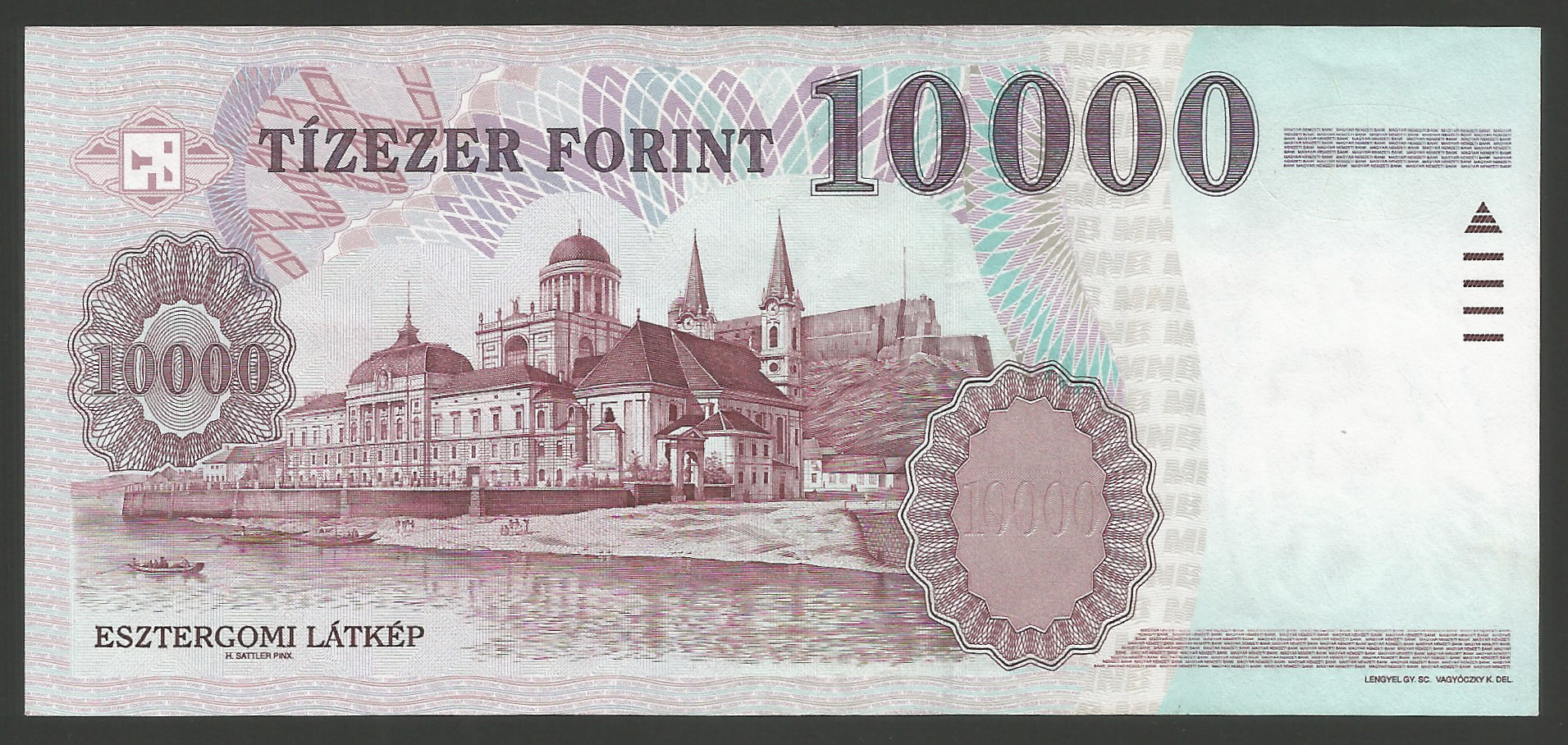 10000 forint 1999 AA hajtatlan állapotban, enyhe nyomódás keresztben a papíron. (sf
