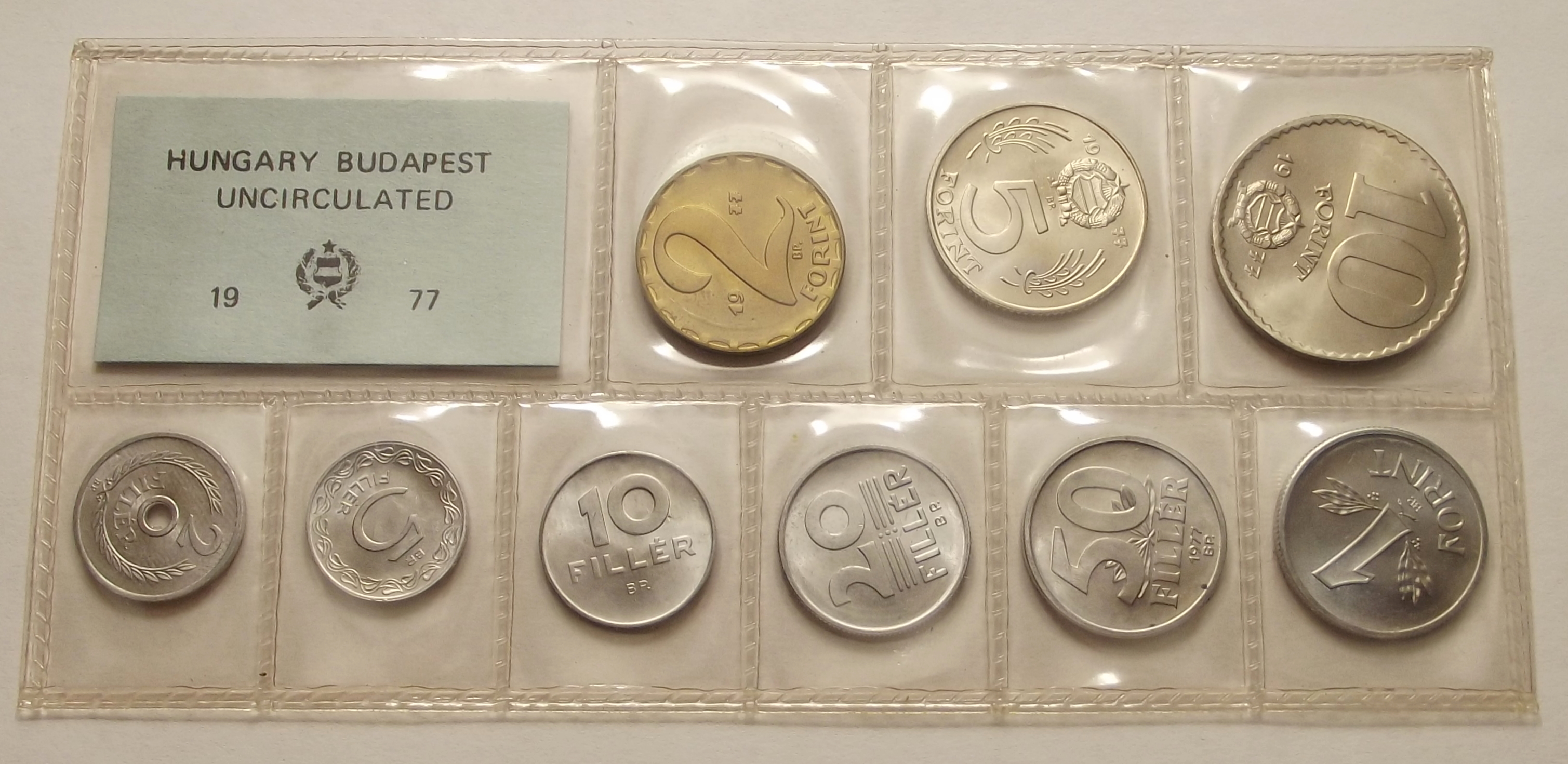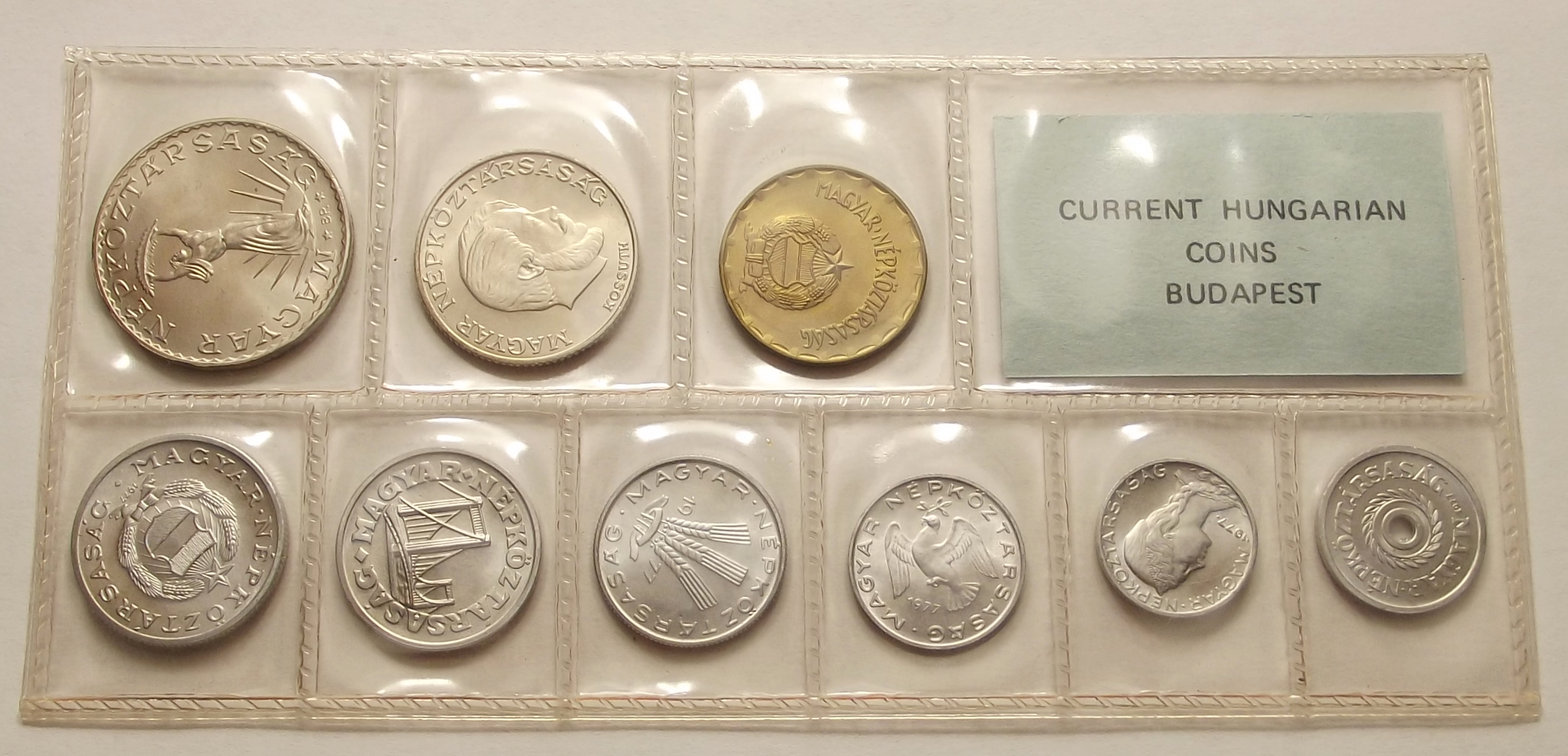1977 fóliás forgalmi sor, szép állapotban. Oxidfoltok az érméken. (hm