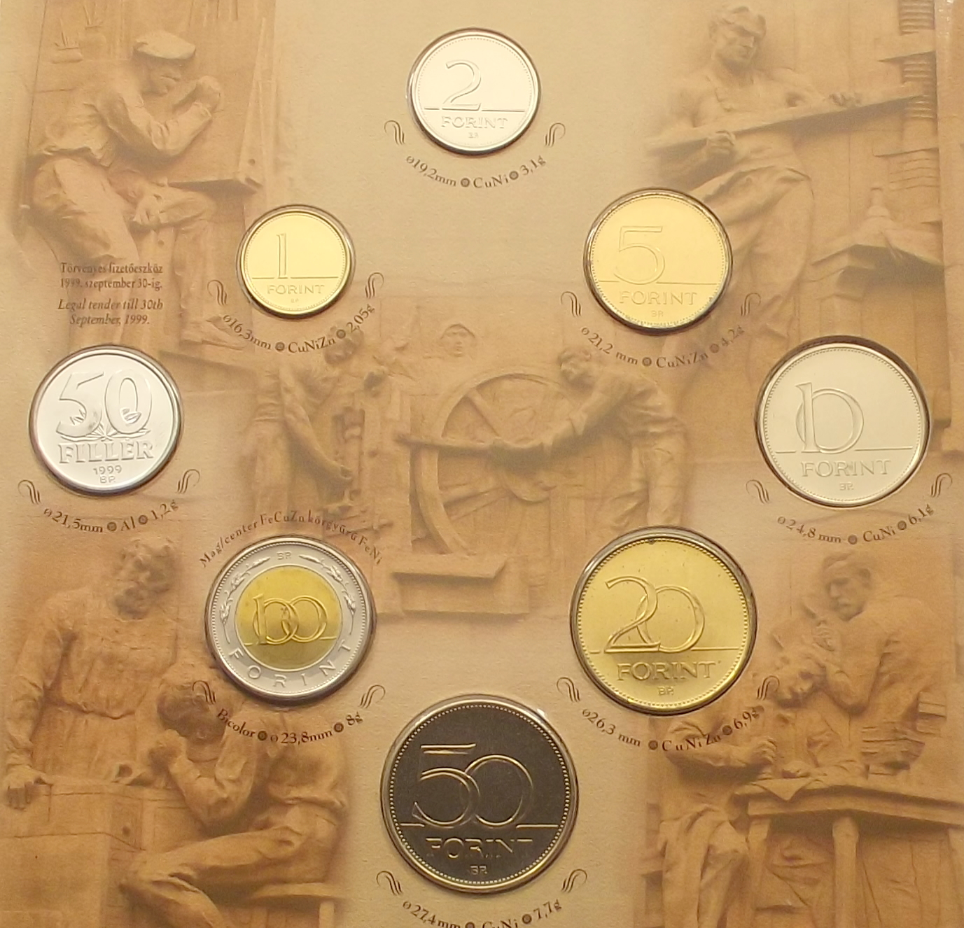 1999 BU dísztokos forgalmi sor kiváló állapotban, néhány érmén enyhe oxidfoltok (gyl