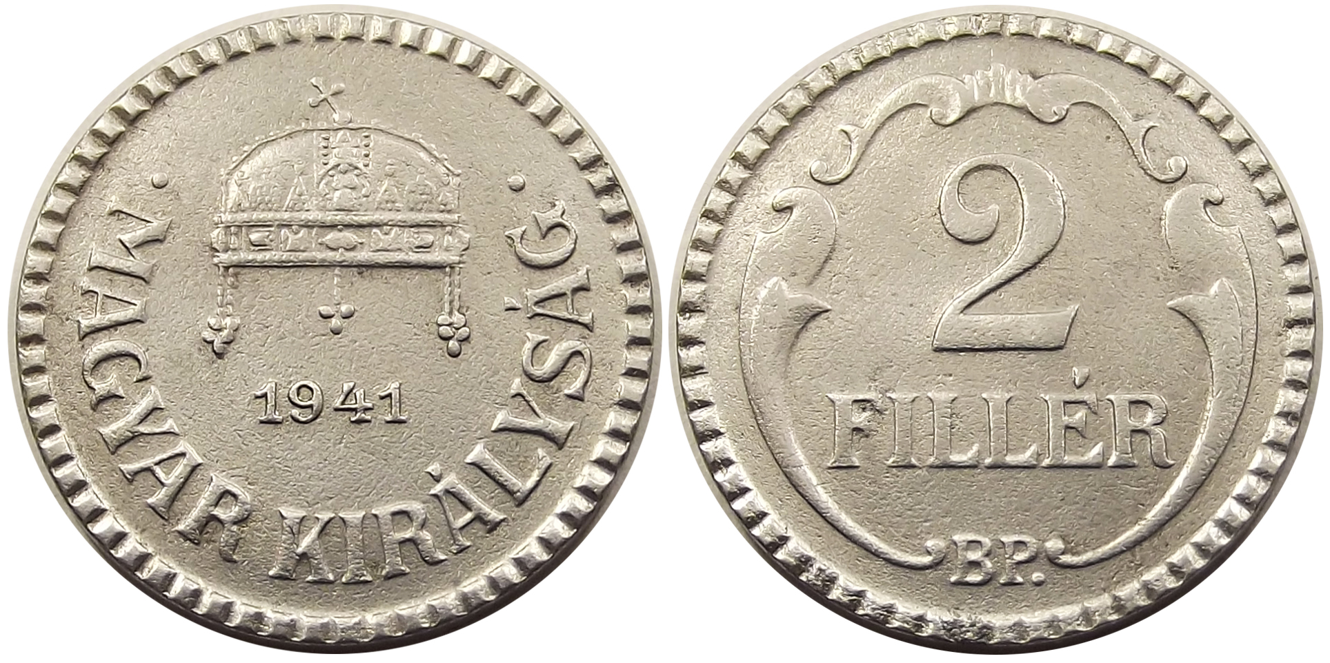 2 fillér 1941 Magyar Királyság kiváló állapotban, nagyon szép felülettel. A legritkább 2 filléres, ebben a tartásban igen ritka. (p