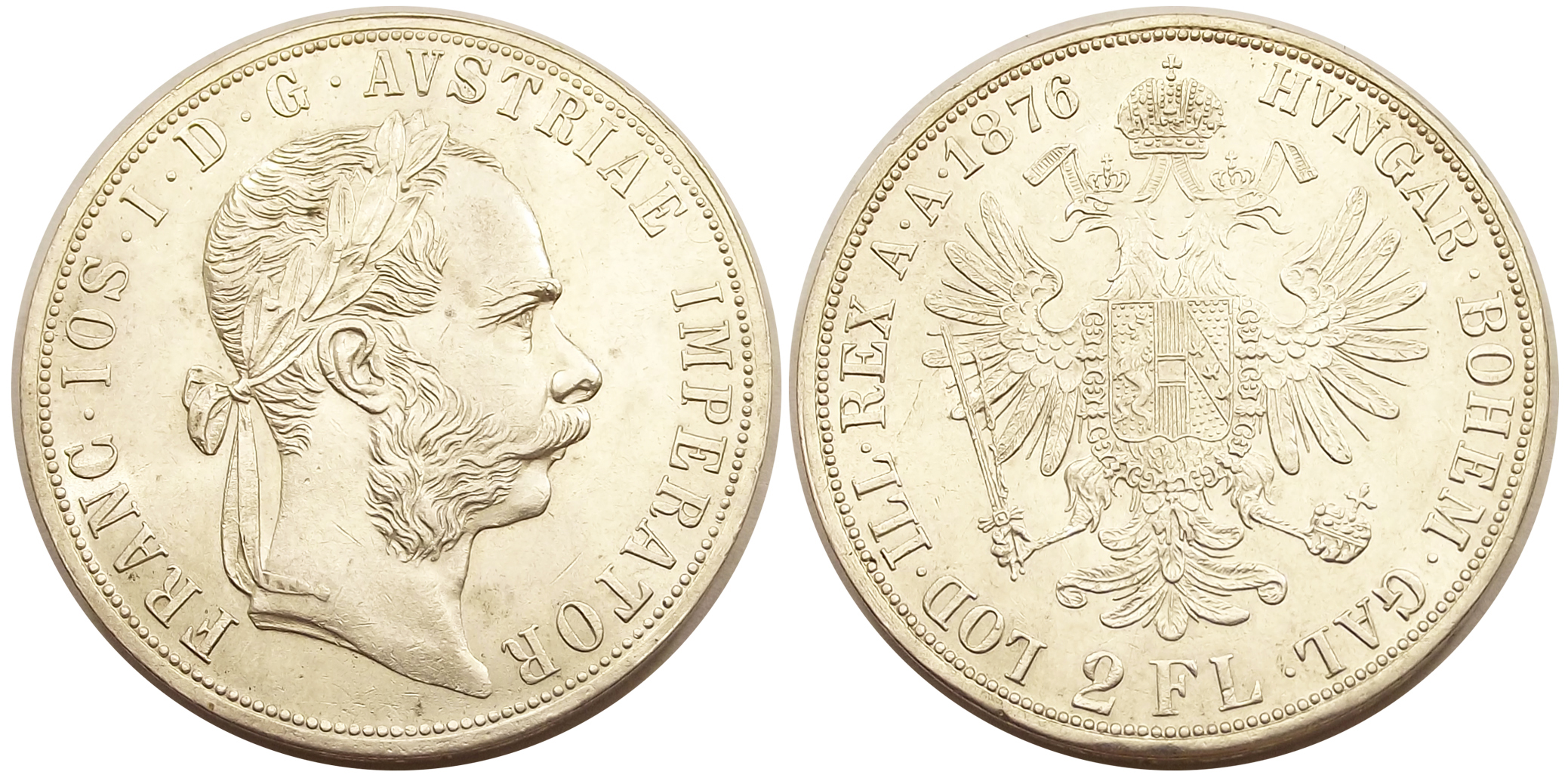 2 florin 1876 Ferenc József kiváló állapotban, éles portréval és címerrel (vg
