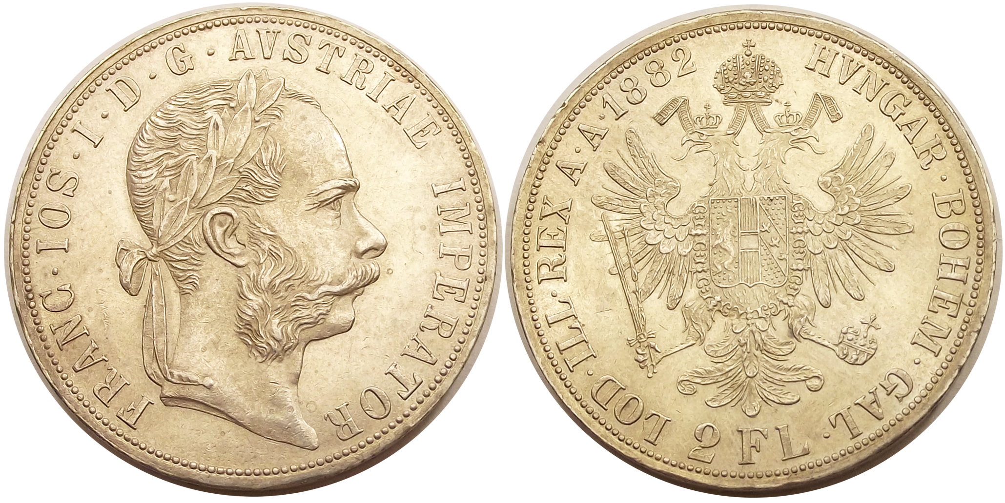 2 florin 1882 Ferenc József kiváló állapotban, patinával (vg