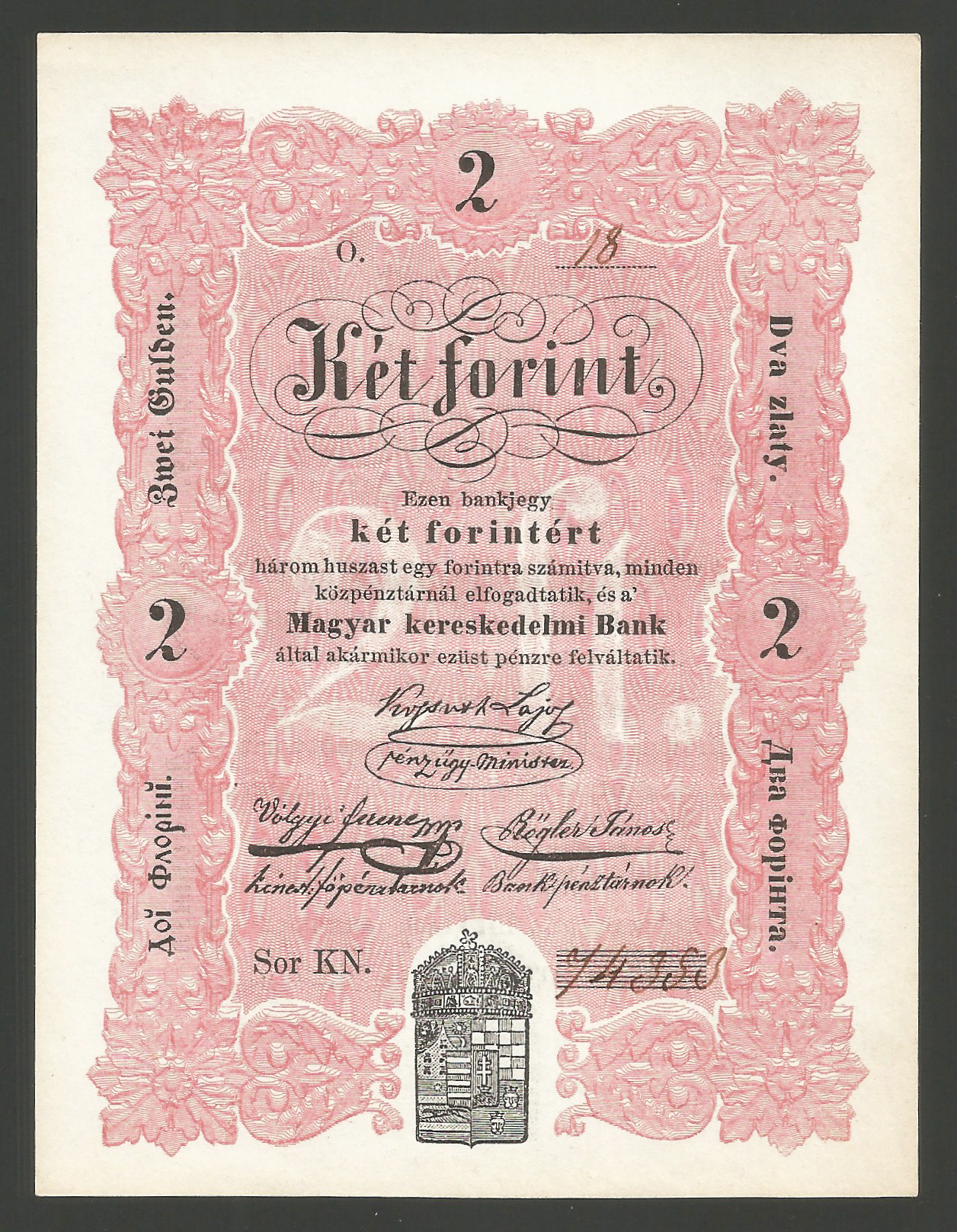 2 forint 1848 Szabadságharc bankfriss tartásban, erős ropogós papírral, gyakorlatilag érintetlen állapotban. Ilyen állapotban ritka! (gy