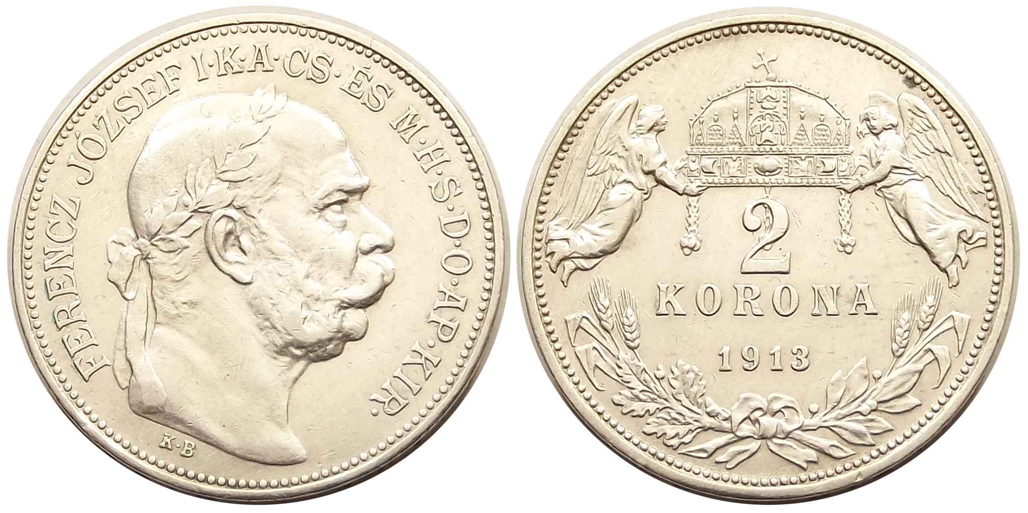 Ezüst 2 korona 1913 Ferenc József nagyon szép állapotban (dcs