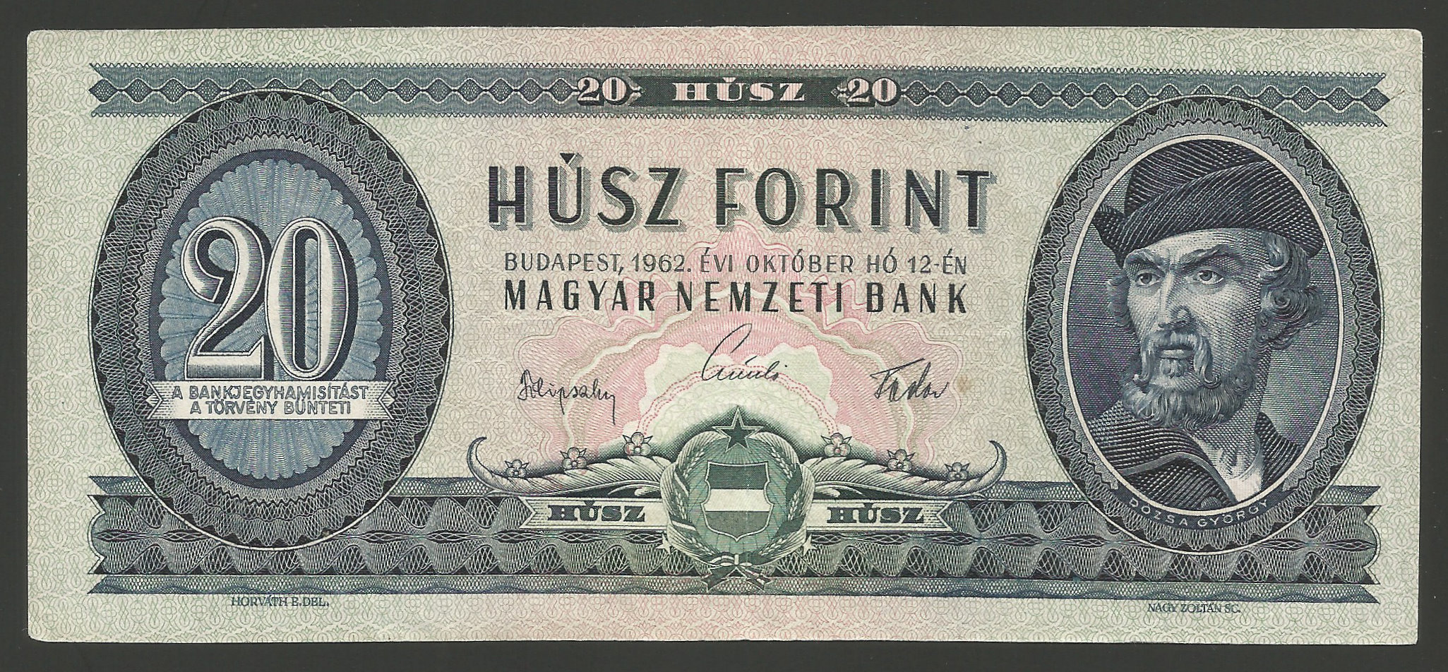 20 forint 1962 nagyon szép állapotban. A bankjegy enyhén préselt (g