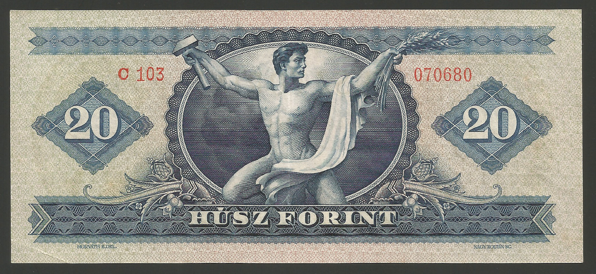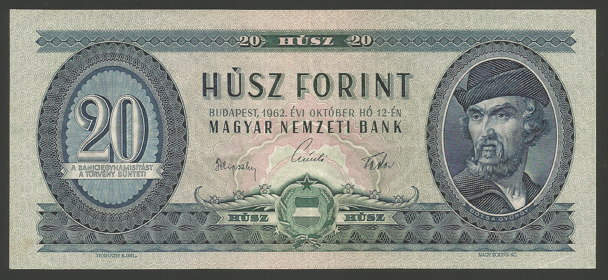 20 forint 1962 nagyon szép állapotban, enyhe hajtások, erős papír (le