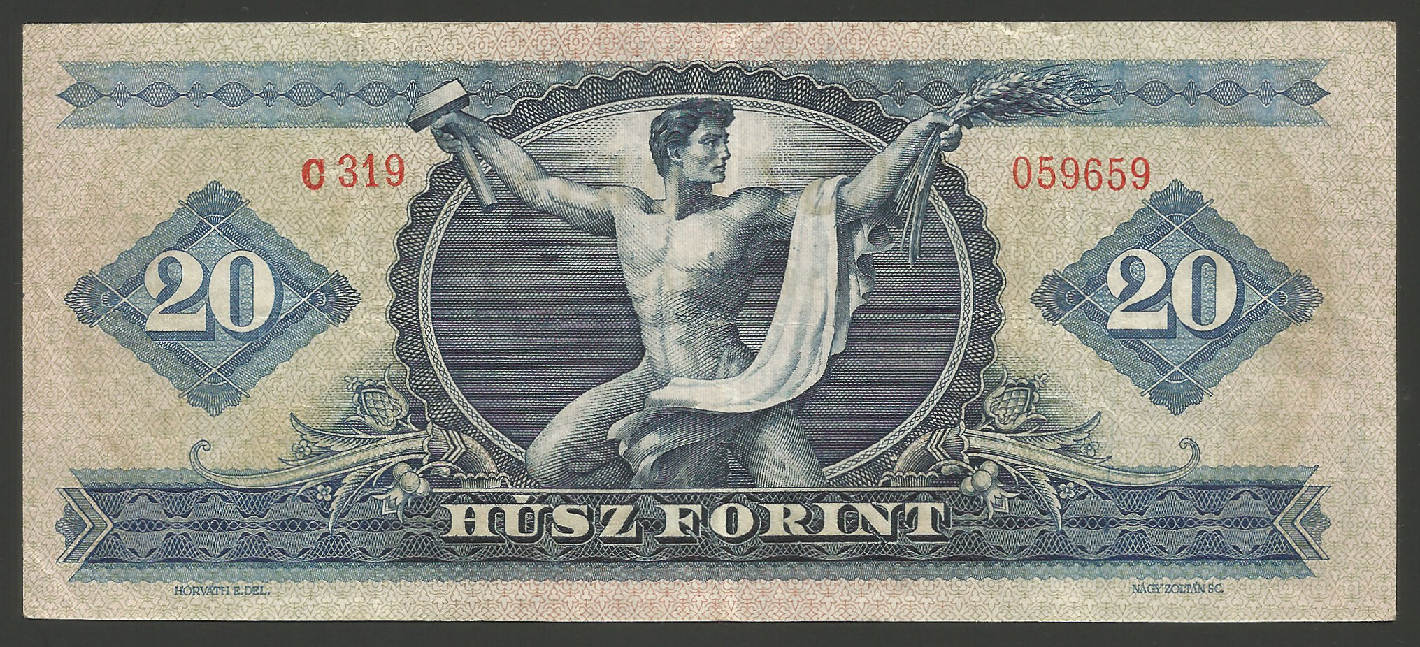 20 forint 1965 nagyon szép állapotban, több hajtással, szép papírral (le