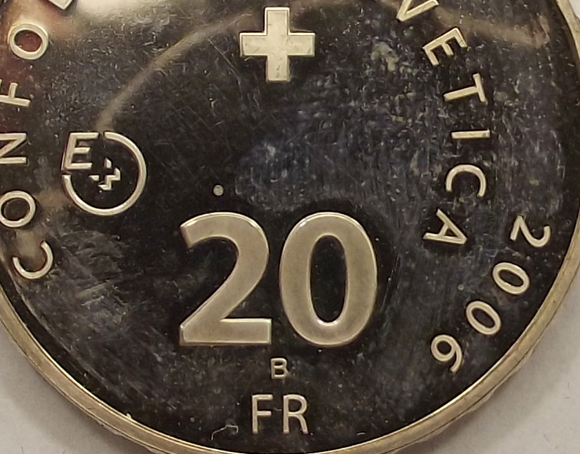 20 frank 2006 Svájc, szép állapotban, foltok az érmén (gyt