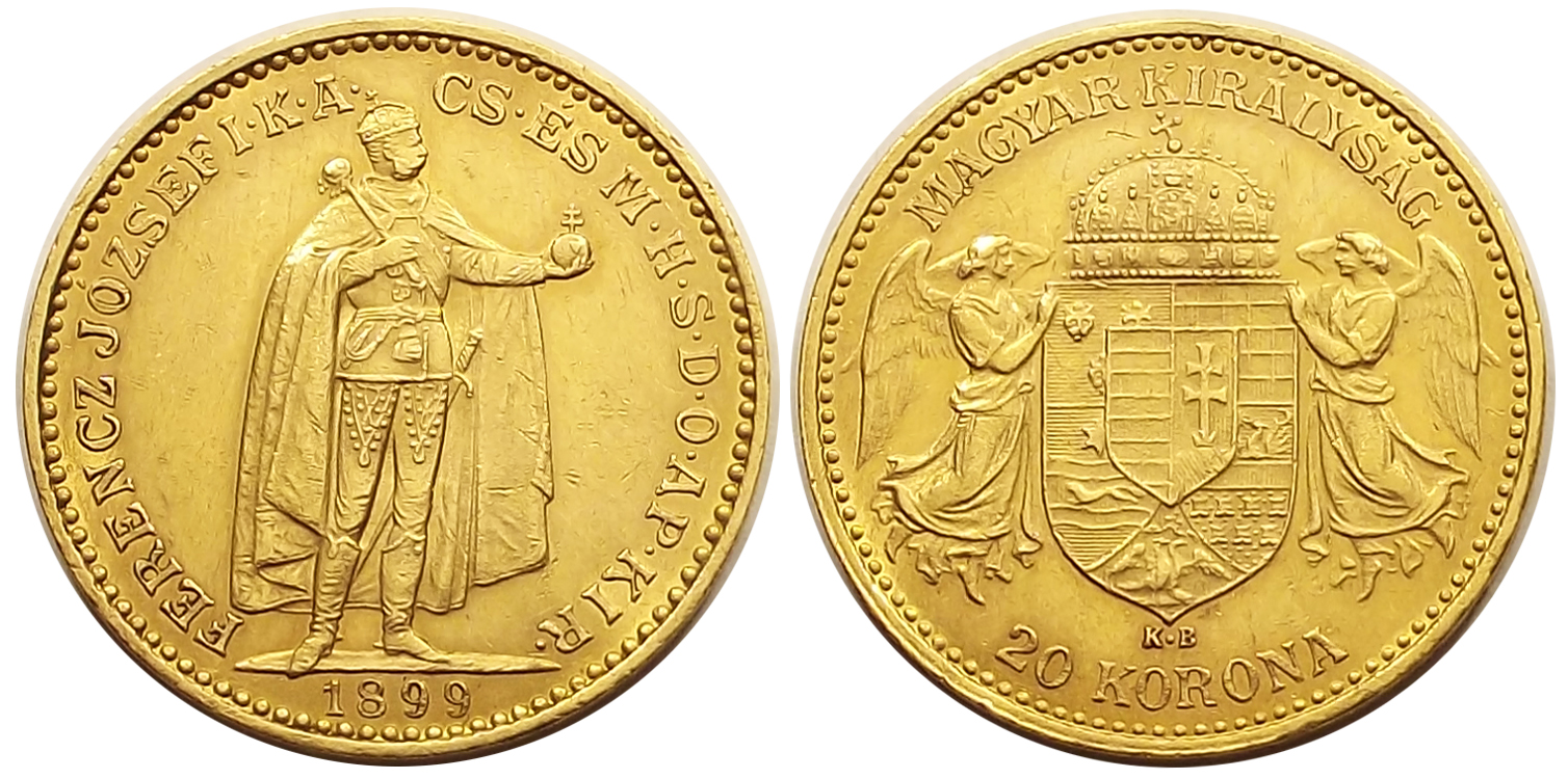 20 korona 1899 Ferenc József szép állapotban. Az érme enyhén tisztítva volt. (na
