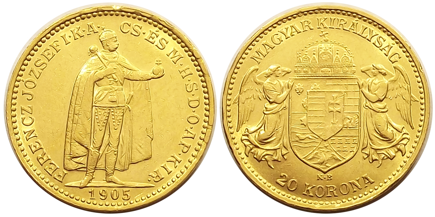 Ferenc József arany 20 korona 1905, kiváló tartásban. (cs a
