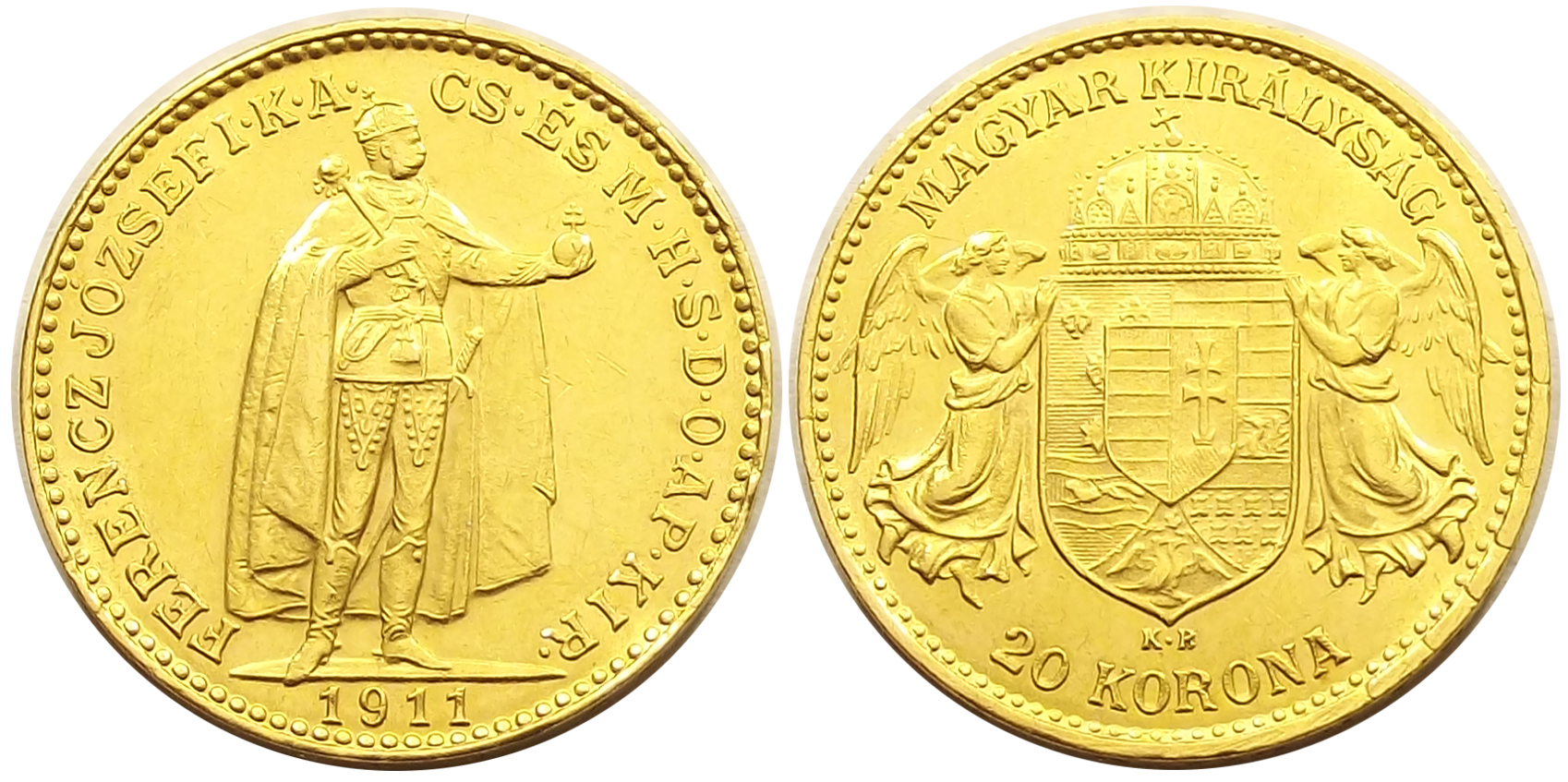 20 korona 1911 Ferenc József kiváló állapotban. éles portréval és címerrel. Ritka évjárat. (s-gy