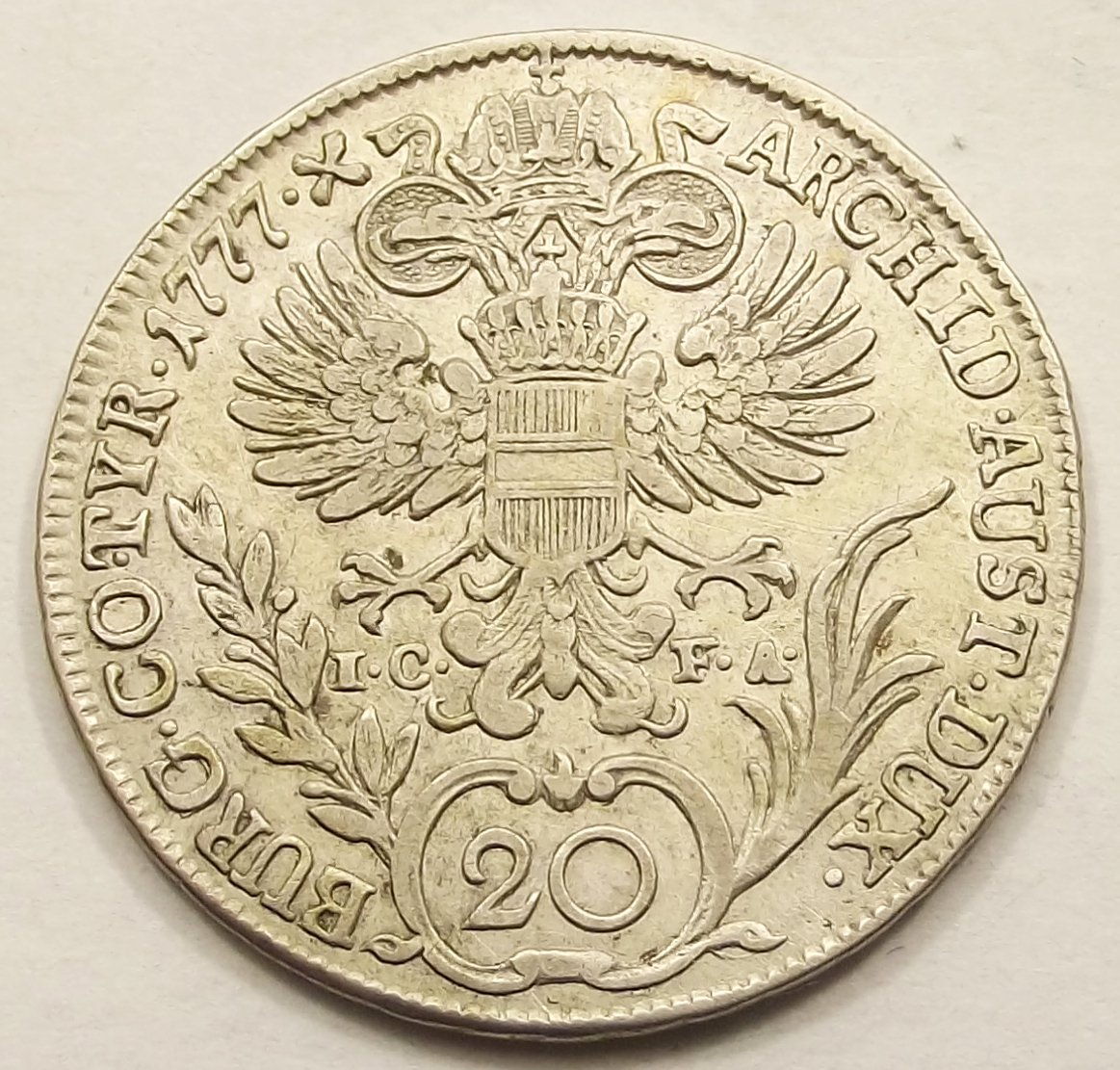 20 krajcár 1777 IC FA (Bécs) Mária Terézia, szép állapotban. (baj