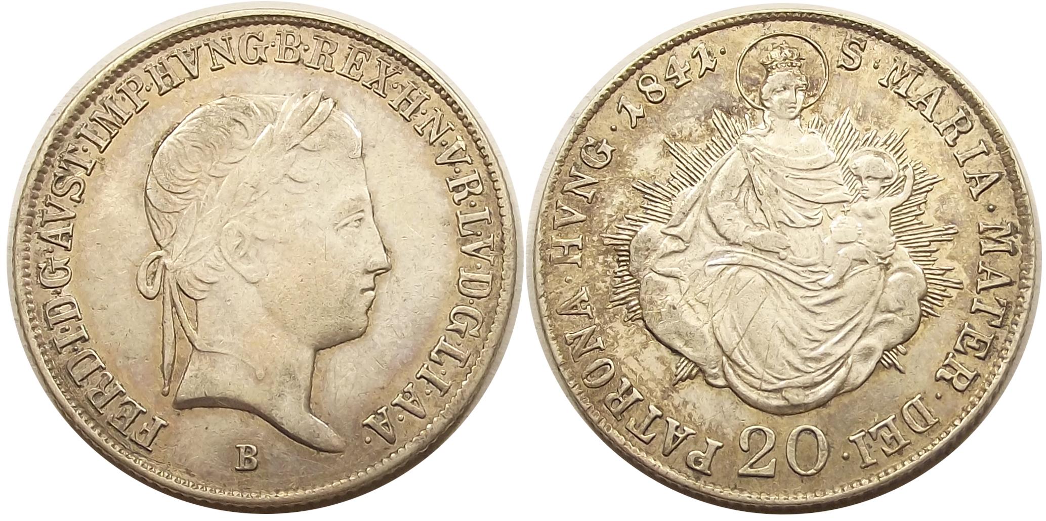 20 krajcár 1841 B, kiváló állapotban, patinával (p