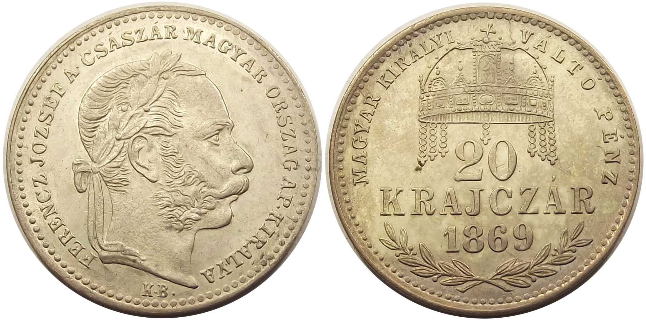 20 krajcár 1869 KB Magyar Királyi Váltó Pénz kiváló állapotban, patinával (ra