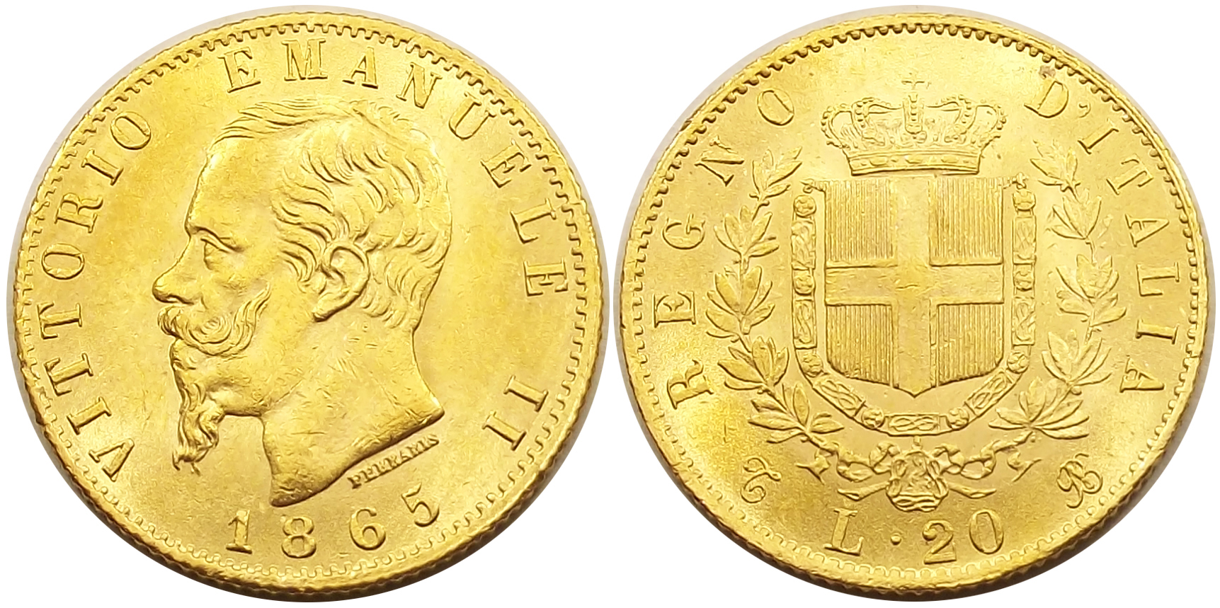 20 líra 1865 II. Viktor Emanuel kiváló állapotban, szép eredeti fénnyel. (k
