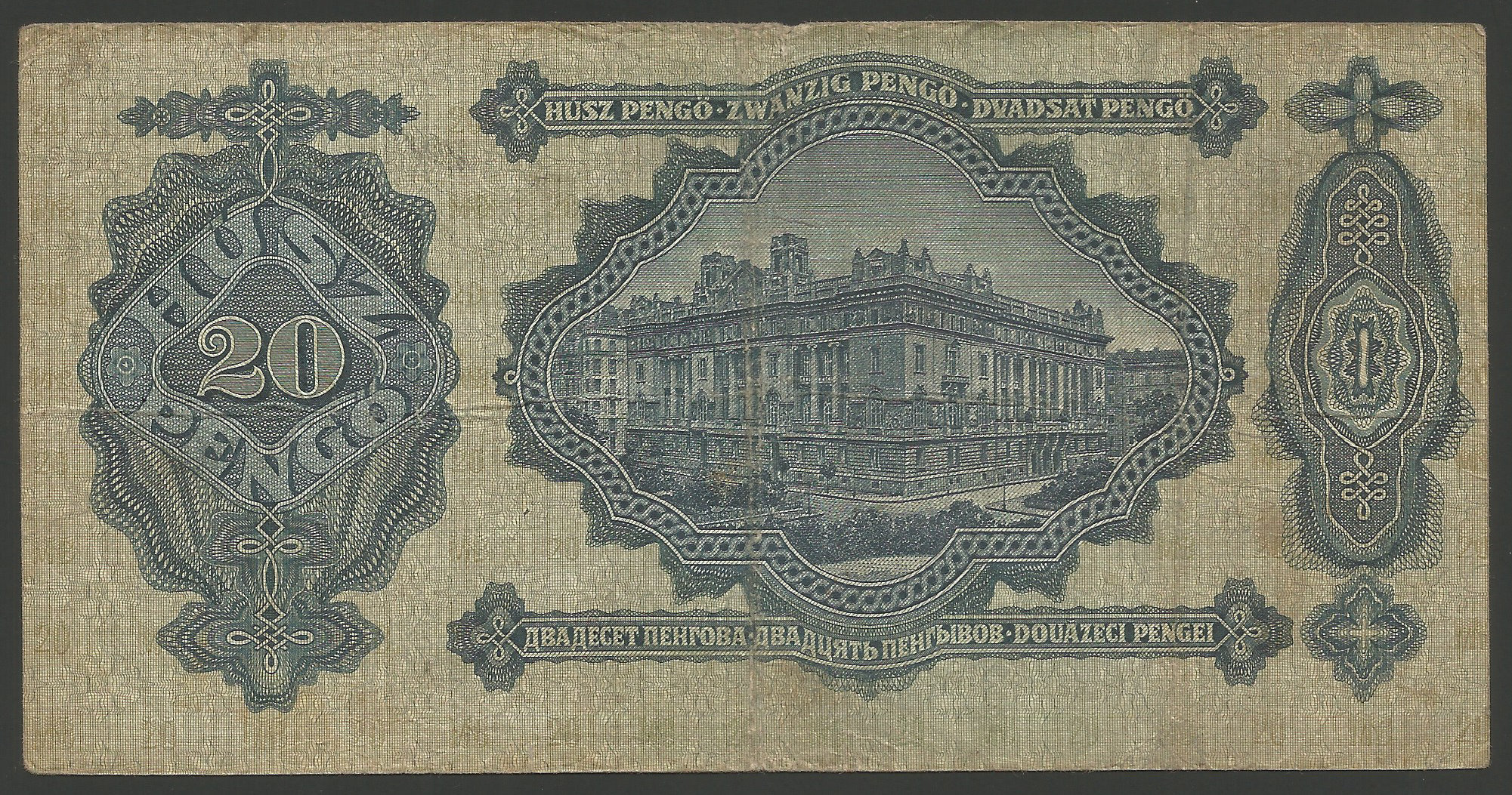20 pengő 1930, több hajtással, használt állapotban, gyűrődésekkel (alb.